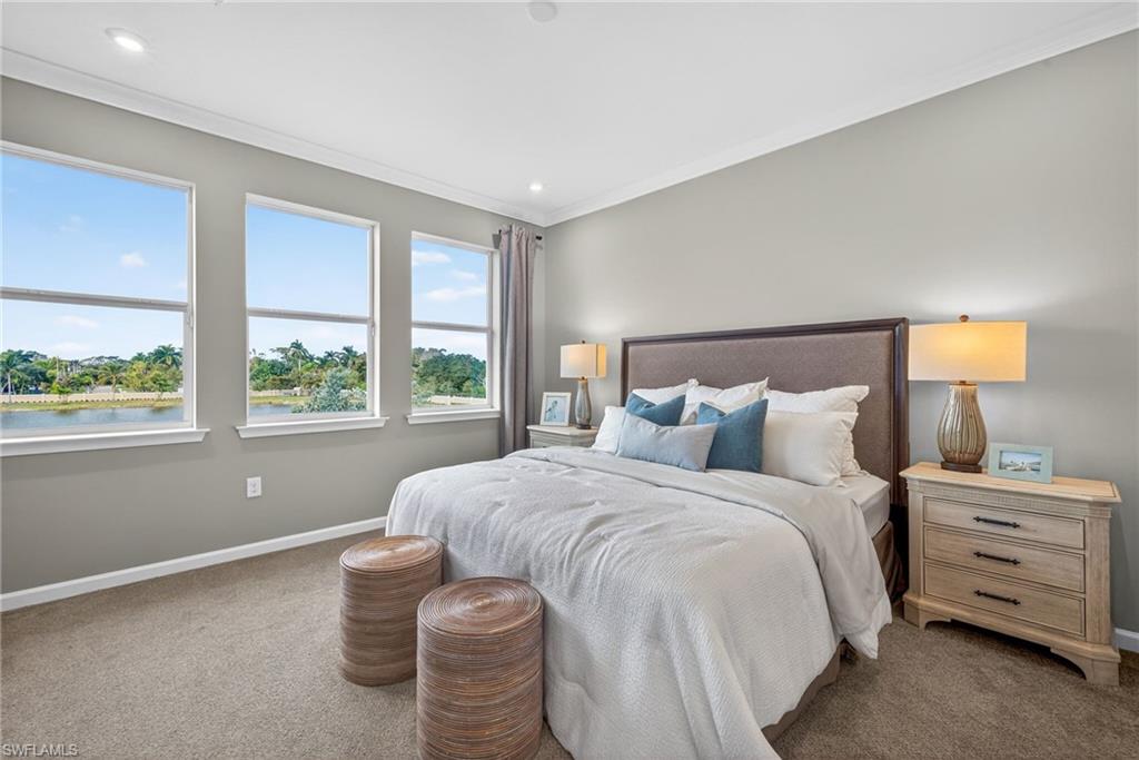 This bright and airy second-floor coach home offers 1,480 sq. ft. of thoughtfully designed living space, featuring 2 bedrooms, 2 baths, a 1-car garage, and a screened lanai. The open layout is ideal for both everyday living and entertaining, with a dining area that flows seamlessly into the kitchen. This was the community Model Home! The residence is beautifully furnished and decorated, its ready for you to move in! The kitchen showcases quartz countertops, accented backsplash, solid wood cabinetry, and a spacious island with seating for 5-6. The tile flooring runs throughout the main living areas, with carpeted bedrooms and staircase. Three large windows over the staircase and expansive sliders in the great room fill the home with natural light. The second bedroom includes its own private balcony—perfect for morning coffee or evening relaxation. Additional highlights include smart home features such as a video doorbell, touchscreen keypad, and an Ecobee smart thermostat compatible with Alexa. Conveniently located near shopping, dining, recreation, beaches, and schools.