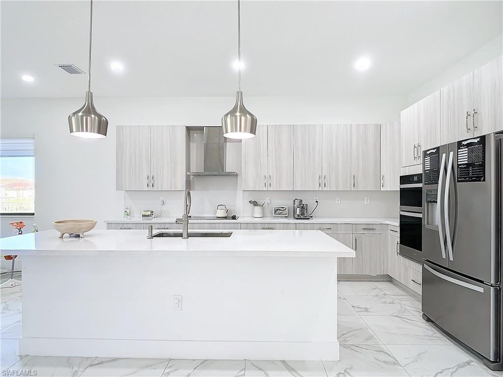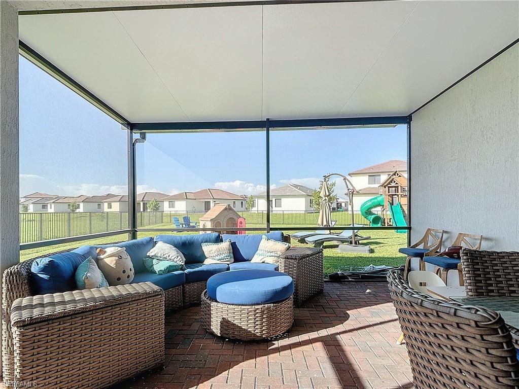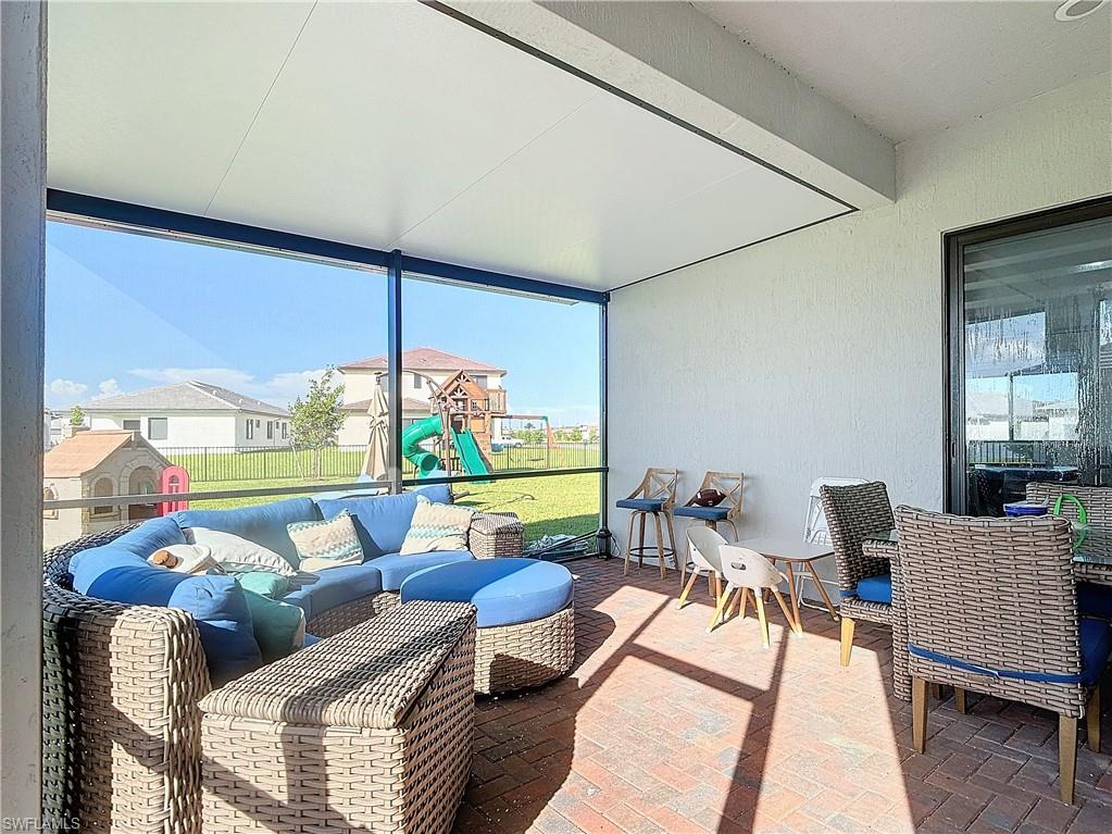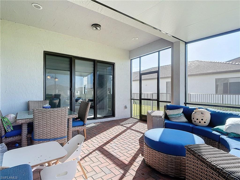 The best buy in Ave Maria! Welcome to your dream oasis nestled on a picturesque corner lot, where elegance meets comfort in this magnificent two-story residence. A ton of upgrades that most of the other homes do not have. Beautiful WATERFRONT PREMIUM lot- largest lot in Maple Ridge. Fully fenced backyard with wrought iron fence, with separate dog area. This stunning 5-bedroom, 4-bathroom home is not just a house; it’s a lifestyle that beckons you to experience luxury living at its finest. As you step inside, you’ll be greeted by an expansive open floor plan that effortlessly blends modern design with cozy living. The generous living spaces are bathed in natural light, creating an inviting atmosphere perfect for both entertaining and relaxation. The heart of this home is the breathtaking modern kitchen with Chef's package, featuring a large island that serves as both a cooking space and a gathering point for family and friends. With top-of-the-line stainless steel appliances, elegant backsplash, beautiful quartz countertops. stunning cabinetry, walk-in pantry, and elegant finishes, this kitchen promises to inspire your inner chef. Luxurious master suite with humongous walk-in closet offers ample storage, ensuring that your wardrobe is beautifully organized, designer bathroom with a soaker tub, double sinks and large walk-in shower. Custom made shades throughout the entire house. Beautiful tile floor on the main level (all tile grouts have been sealed in the entire house). High quality impact windows and doors will make you feel secure and protected. Designed to withstand strong winds and provide noise reduction, these features not only enhance safety but also offer energy efficiency, keeping your utility bills low. Separate laundry room with plenty of room to keep you organized. Extended screened in lanai with tranquil lake views. Feel like you are on vacation with resort style amenities in this lively extremely desirable community.