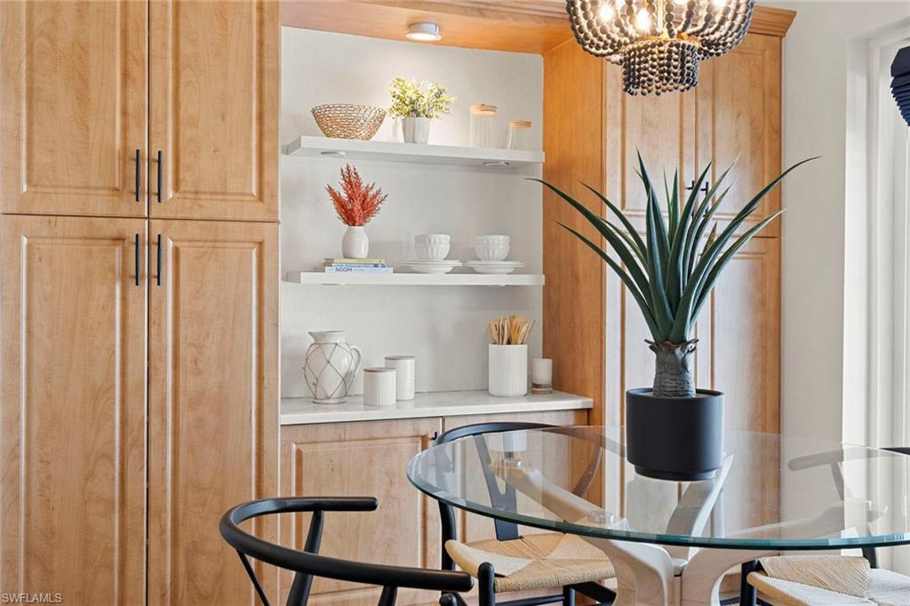 Beautifully renovated second floor condominium in the heart of Pelican Bay. This light-filled residence in Laurel Oaks pairs vaulted ceilings with two screened lanais for an airy indoor-outdoor flow. Featuring an open living area, a split two-bedroom, two-bath plan, and a well-placed beautifully updated kitchen with casual dining. Move-in ready and peace-of-mind updates where it matters most such as newer air conditioner, plus community improvements including new roofs, new carports and updated landscaping. Laurel Oaks offers a sparkling pool, spa and social room in a quiet, park-like setting, while Pelican Bay delivers lifestyle Naples is known for such as private beach clubs with chair/umbrella service and beachfront dining, miles of recreational paths, a fitness and wellness center, tennis and pickleball, and convenient beach tram. All this moments from Waterside Shops and Artis-Naples, and a short drive to Mercato and Fifth Avenue South. If you're seeking the Pelican Bay experience without a tower price or a project list, this Laurel Oaks condominium is the effortless yes.