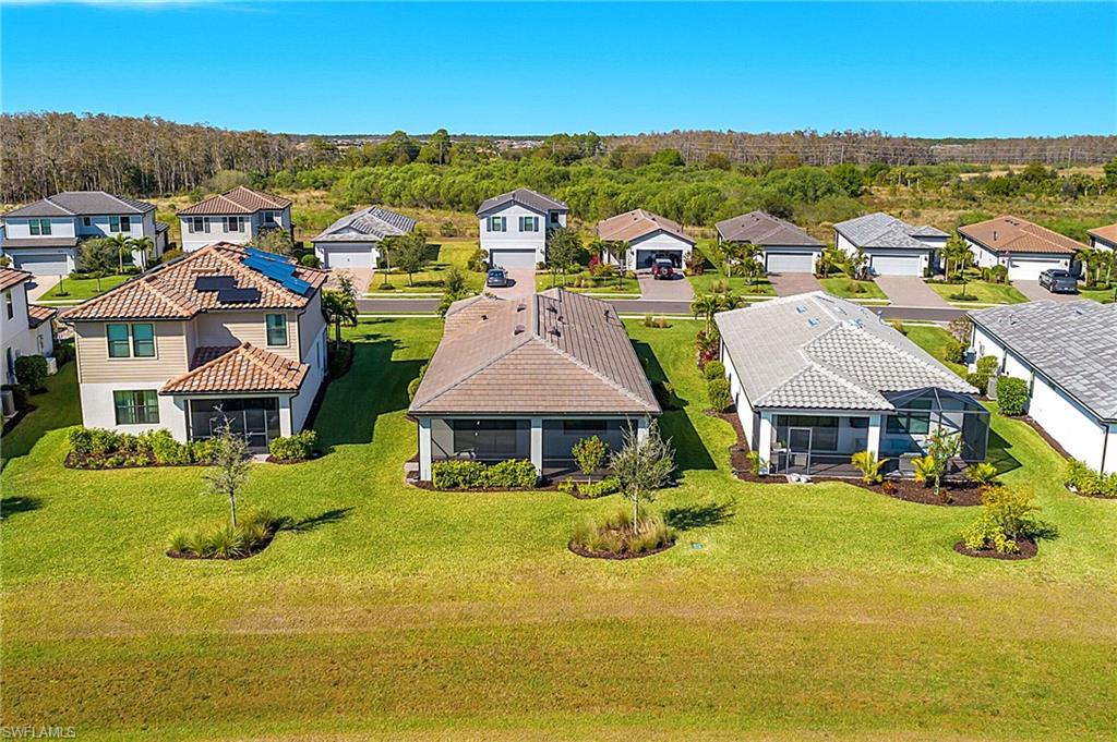 SIGNIFICANT PRICE REDUCTION FOR IMMEDIATE SALE! HIGHLY DESIRABLE LAKEFRONT HOME WITH SOUTHERLY REAR EXPOSURE IN VERDANA VILLAGE. This “Contour” model by Pulte offers 2 Bedrooms + Den, 2 Full Baths, 2 Car Garage w/4' EXTENSION, 1,405sf living area. ULTRA QUIET REAR LANAI... the back of the home faces away from Corkscrew Road (NO ROAD NOISE HERE)! This home is located in FLOOD ZONE X (No flood insurance required if financing). The heart of the home offers OPEN CONCEPT LIVING, ideal for everyday comfort and entertaining. Sliding glass door opens to a massive, EXTENDED COVERED LANAI (30’ x 10’) creating a seamless indoor/outdoor living space. Relax on your lanai while taking in those SPARKLING WATER VIEWS. The OVERSIZED HOMESITE provides EXTRA GREEN SPACE on the both sides of the home and a SPACIOUS BACKYARD. Easy to add a fence for your fur babies to run around and/or install your dream oasis with a custom-built POOL/SPA. Inside, you’ll find a CHEF’S KITCHEN equipped with a NATURAL GAS RANGE and UPGRADED KITCHEN-AID STAINLESS STEEL APPLIANCES. The WHITE cabinetry, CARRARA STYLE QUARTZ countertops, Marble Arabesque Backsplash, and UNDERCABINET LIGHTING create a timeless look. The kitchen island and the pantry provide additional storage. The 12 x 24 PORCELAIN PLANK TILE flooring flows throughout the home (NO CARPET!). Greatroom features motorized window treatments and recessed lighting. The Primary Suite with large windows overlooks the TRANQUIL LAKE. The Primary Bath showcases QUARTZ Countertops, dual sinks, an OVERSIZED ENCLOSED SHOWER, private water closet and linen closet along with a LARGE WALK IN CLOSET. The Secondary Bedroom offers a spacious getaway for guests to relax. The Secondary Bathroom showcases QUARTZ countertops and a Tub/Shower with HEAVY GLASS ENCLOSURE. The Den overlooks the front porch and features glass accented double doors. The Laundry is equipped with washer and dryer. Garage is complete with a HEAVY FLAKE EPOXY FLOOR. Verdana Village residents enjoy an unbeatable amenity package including indoor/outdoor pickleball & tennis, indoor basketball, bocce ball, clubhouse, dog park, resort-style pool & spa, fitness, movement studio, playground w/sun shade, a full-service restaurant, craft beer lounge, cafe and indoor/outdoor patio bar. Additional satellite amenity campuses with pools/lap lanes and fitness centers are found in each village. Adjacent to Verdana Village is a new Publix grocery store, Dunkin’ Donuts, Nail salon, Hair Salon, UPS Store, Italian Restaurant and more. Across the street is a fire station with full EMS services. For GOLF ENTHUSIASTS, the highly rated Jack Nicklaus designed OLD CORKSCREW GOLF CLUB is open to the public and located just 1.5 miles away. Conveniently located just 25 MINUTES TO SOUTHWEST FLORIDA INTERNATIONAL AIRPORT, 15 MINUTES TO AMAZING SHOPPING at MIROMAR OUTLETS AND GULF COAST TOWN CENTER, and only 30-45 MINUTES TO BONITA BEACH.