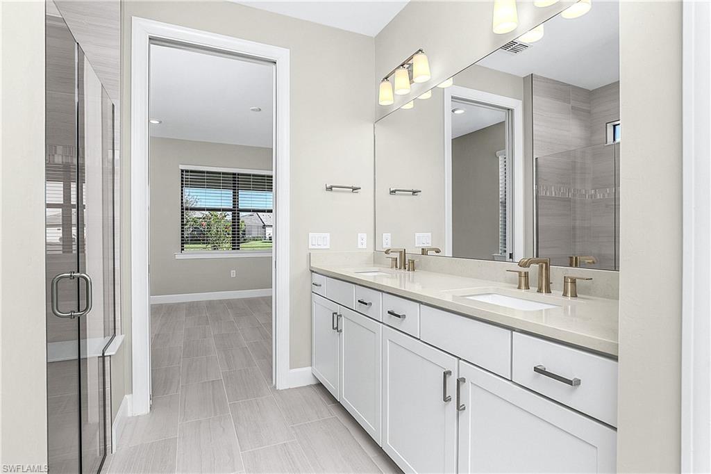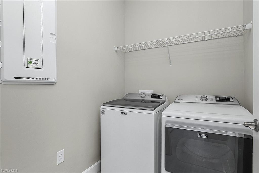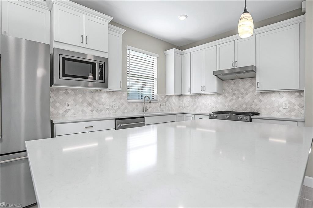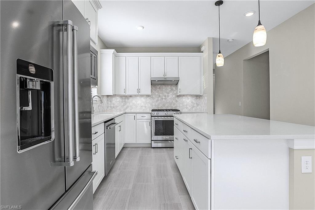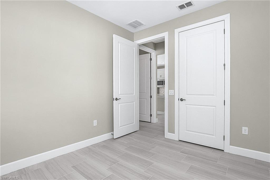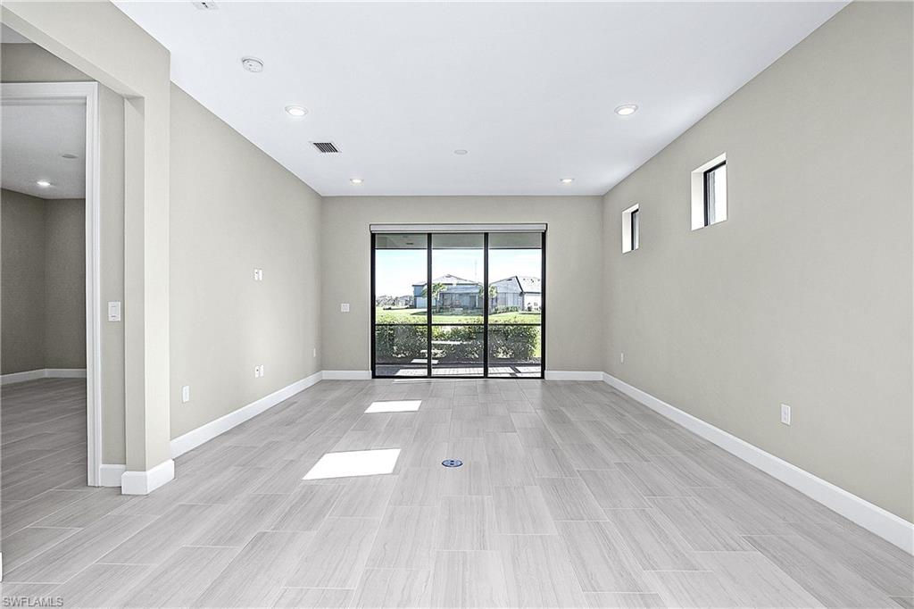 MOVE IN RIGHT AWAY AND ENJOY THIS SEASON! HIGHLY DESIRABLE LAKEFRONT HOME WITH SOUTHERLY REAR EXPOSURE IN VERDANA VILLAGE. This “Contour” model by Pulte offers 2 Bedrooms + Den, 2 Baths, 2 Car Garage w/4' EXTENSION, 1,405sf living area. ULTRA QUIET REAR LANAI... the back of the home faces away from Corkscrew Road (NO ROAD NOISE HERE)! This home is located in FLOOD ZONE X (No flood insurance required if financing). The heart of the home offers OPEN CONCEPT LIVING, ideal for everyday comfort and entertaining. Sliding glass door opens to a massive, EXTENDED COVERED LANAI (30’ x 10’) creating a seamless indoor/outdoor living space. Relax on your lanai while taking in those SPARKLING WATER VIEWS. The OVERSIZED HOMESITE provides EXTRA GREEN SPACE on the both sides of the home and a SPACIOUS BACKYARD. Easy to add a fence for your fur babies to run around and/or install your dream oasis with a custom-built POOL/SPA. Inside, you’ll find a CHEF’S KITCHEN equipped with a NATURAL GAS RANGE and UPGRADED KITCHEN-AID STAINLESS STEEL APPLIANCES. The WHITE cabinetry, CARRARA STYLE QUARTZ countertops, Marble Arabesque Backsplash, and UNDERCABINET LIGHTING create a timeless look. The kitchen island and the pantry provide additional storage. The 12 x 24 PORCELAIN PLANK TILE flooring flows throughout the home (NO CARPET!). Greatroom features motorized window treatments and recessed lighting. The Primary Suite with large windows overlooks the TRANQUIL LAKE. The Primary Bath showcases QUARTZ Countertops, dual sinks, an OVERSIZED ENCLOSED SHOWER, private water closet and linen closet along with a LARGE WALK IN CLOSET. The Secondary Bedroom offers a spacious getaway for guests to relax. The Secondary Bathroom showcases QUARTZ countertops and a Tub/Shower with HEAVY GLASS ENCLOSURE. The Den overlooks the front porch and features glass accented double doors. The Laundry is equipped with washer and dryer. Garage is complete with a HEAVY FLAKE EPOXY FLOOR. Verdana Village residents enjoy an unbeatable amenity package including indoor/outdoor pickleball & tennis, indoor basketball, bocce ball, clubhouse, dog park, resort-style pool & spa, fitness, movement studio, playground w/sun shade, a full-service restaurant, craft beer lounge, cafe and indoor/outdoor patio bar. Additional satellite amenity campuses with pools/lap lanes and fitness centers are found in each village. Adjacent to Verdana Village is a new Publix grocery store, Dunkin’ Donuts, Nail salon, Hair Salon, UPS Store, Italian Restaurant and more. Across the street is a fire station with full EMS services. For GOLF ENTHUSIASTS, the highly rated Jack Nicklaus designed OLD CORKSCREW GOLF CLUB is open to the public and located just 1.5 miles away. Conveniently located just 25 MINUTES TO SOUTHWEST FLORIDA INTERNATIONAL AIRPORT, 15 MINUTES TO AMAZING SHOPPING at MIROMAR OUTLETS AND GULF COAST TOWN CENTER, and only 30-45 MINUTES TO BONITA BEACH.