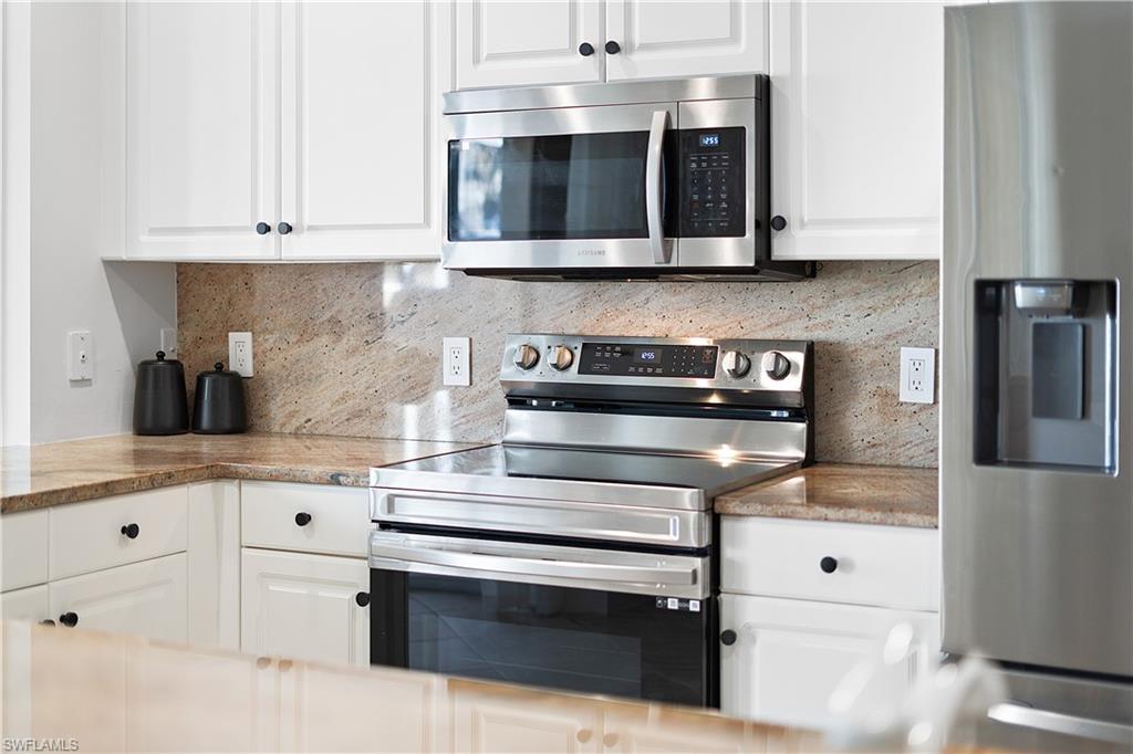 PURCHASE AND USE THIS SEASON!! ENJOY BEAUTIFUL SUNRISES OVER THE GOLF COURSE AND UNBEATABLE CONVENIENCE TO DINING AND ENTERTAINMENT! This MOVE-IN READY Attached Villa in Stoneybrook Golf and Country Club offers 2 Bedrooms + Open Den (or Formal Dining), 2 Full Baths, 1 Car Garage, 1,307sf Living Space with 2 SCREENED LANAIS offering 278sf of OUTDOOR LIVING SPACE. Enjoy the benefits of living on a golf course with open fairway wooded views without being locked into an expensive golf membership. Recent improvements to this villa include BRAND NEW HVAC UNIT installed December 2025, fresh exterior paint and newly screened front and rear lanais. The front screened lanai provides a welcoming space for guests to enjoy and take in those spectacular Florida Sunsets. The rear screened lanai is equipped with a manual HURRICANE SCREEN and offers a peaceful place to relax. The eastern rear exposure delivers beautiful sunrise views across the golf course and through the oak trees. The interior of this unit is bright and welcoming, featuring hard surfaces throughout (NO CARPET)... tile flows into the main areas while wide-plank white oak flooring enhances the bedrooms. The Chef’s Kitchen is complete with WHITE CABINETRY, newer STAINLESS-STEEL APPLIANCES, and GRANITE counters that flow seamlessly up into the matching BACKSPLASH for a rich upscale feel. The Kitchen Island showcases DESIGNER PENDANT LIGHTING and Bar Height casual seating joined by both a dining space (currently used as a den/sitting room) and a breakfast nook that overlooks the golf course with access to the rear lanai. The Greatroom features a 2 panel glass sliding door which opens to the lanai to create a spacious INDOOR/OUTDOOR ENTERTAINING SPACE. The OVERSIZED Primary Suite showcases TWO CLOSETS joined by a REMODELED PRIMARY BATH with enclosed shower. The Guest Bedroom provides ample space for friends/family to stay with a bathroom right across the hall. The Guest Bathroom has been REFRESHED with a new vanity and features a tub/shower joined by the Laundry Room. This unit is complete with PLANTATION SHUTTERS THROUGHOUT, updated baseboards and trim along with a series of thoughtful ELECTRICAL UPGRADES including recessed lighting, dimmer switches, and EV charger in the garage. The garage is complete with cabinetry for added storage. Residents of Stoneybrook enjoy robust amenities. Golf on your terms with the 18-hole public championship golf course. There is a separate pool/covered picnic area for the villa residents just 6 buildings away. Main amenities include a Clubhouse, Fitness Center, Library, Catering Kitchen. For outdoor enthusiasts, enjoy the sports courts (6 Pickleball, 2 Tennis, Basketball, Bocce), Sand Volleyball, Large field for Baseball/Soccer, Covered Playground, Spa and Pool with lap lanes. Conveniently located approximately 15 minutes to the Southwest Florida International Airport, 25 minutes to Beaches, and just outside the community gates is dining, shopping and entertainment.