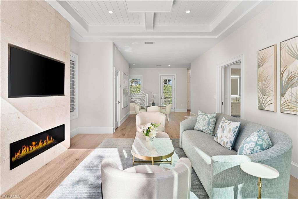 New construction single family home in the heart of Olde Naples built in 2024 for under $3.5M! This never lived in distinguished two-story pool residence embodies the timeless charm of cottage living . Thoughtfully designed with 1,976 square feet under air, the home blends classic coastal architecture with elevated modern comforts. The gracious floor plan offers a spacious first-floor primary suite, providing a private sanctuary with a spa-inspired bath, walk-in closet, elegant finishes and serene proportions. Throughout the home, warm-toned wide-plank wood flooring creates continuity and warmth, bespoke detailing, plantation shutters and a curated selection of luxury appliances. The gourmet kitchen includes custom cabinetry, a beautiful wraparound backsplash, quartz countertops, soft brass finishes, and a convenient center island with a two-drawer refrigerator and freezer. Designed for formal and relaxed entertaining, the open great room with floor-to-ceiling tiled linear gas fireplace and TV shelf flows seamlessly into a beautiful, dedicated dining area, both overlooking the inviting and outdoor deck and pool, an ideal setting for intimate gatherings, morning coffee or quiet afternoons. The second level reveals a refined open loft, ideal for a sitting room or reading retreat, along with two generously sized en-suite guest bedrooms and a generous and thoughtfully designed laundry room. Clive Daniel Homes furnished the home, and it is being sold with furnishings. Positioned within short distance to Fifth Avenue South and just minutes from the Gulf beaches, this exceptional residence places you in the heart of downtown Naples, surrounded by fine dining, boutique shopping, galleries and theatres, capturing the spirit, and enduring coastal elegance and vibe of Old Naples.