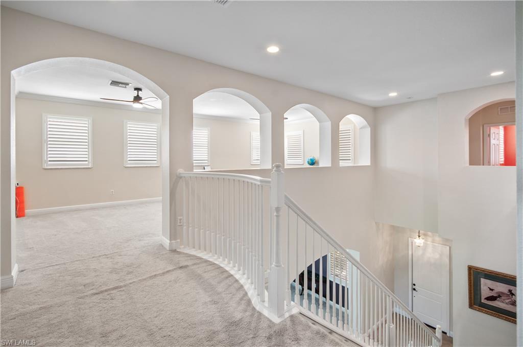 Great Value in Valencia Golf and Country Club! Opportunity Calls with this meticulously Maintained Home with Western Exposure, and the Highly Desired Petaluma Floorplan. Featuring over 4,200 Square Feet of Living Space. The foyer opens to the Formal Living and Dining area. Oversized Staircase Leads to the Balcony and Open Loft Area. The Spacious Updated eat-in Kitchen Opens to the Comfortable Family Room with Lake and Golf Course Views. Convenient Primary 1st floor Suite. Additional Guest Bedrooms and Bathrooms are on the Second Floor. As Always, Valencia Amenities Include a Pool, Fitness Center, Theater, 18-hole Gordon Lewis pay as you play golf course, a clubhouse, and Library. The new Big Corkscrew Island Regional Park is Close by and offers Baseball/Softball fields, Tennis, Pickleball, Basketball, Playground, and Water Park. Valencia Golf and Country Club has no condos. The HOA fee includes Lawn care, Trash, Irrigation, ADT Alarm Monitoring and an On-site Manager. Golf carts are allowed in the community.