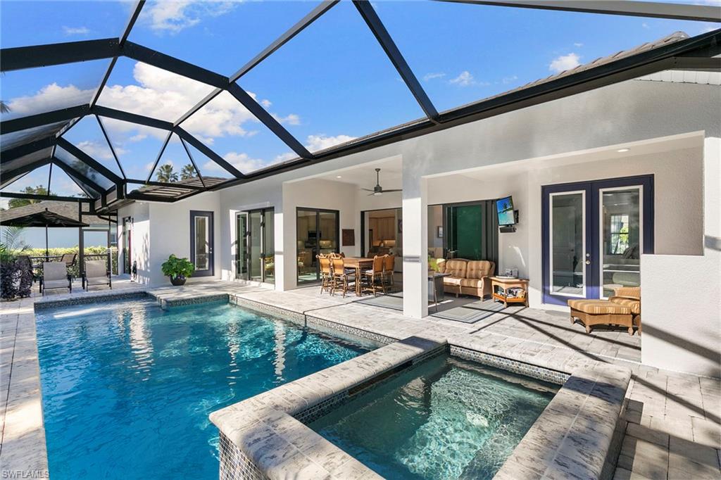 Presenting an impeccably maintained furnished, three-bedroom plus den, three-bath pool home designed to meet all your lifestyle needs. The residence, built in 2019, welcomes you into a spacious open concept living area featuring stylish décor, high ceilings and ample natural light. The fully equipped kitchen is fitted with modern appliances, pantry, generous granite counter space, breakfast nook, and a substantial island suitable for culinary preparation and entertainment. The property’s outdoor area is thoughtfully designed as an inviting retreat, including a heated pool, spa, and screened lanai with comfortable seating and dining amid tropical landscaping and surrounded by a protected natural preserve. Each bedroom offers comfort and privacy, with primary suite providing direct access to the lanai for tranquil morning views and relaxation. The en-suite bath boasts double vanities, a soaking tub and a glass-enclosed shower. Two guest rooms, each accompanied by a full bath and pool entry, ensure convenience for residents and visitors alike. The den, adjacent to the main living space, offers an additional flexible room for work or leisure. Completing the home is a full-size laundry room, new water heater installed on 12/25, hurricane-impact glass windows and doors, circular paver driveway and two-car garage. Only minutes from Marco Island’s beautiful beaches, restaurants, shops and boating amenities, this property offers convenience and seclusion, making it an ideal spot for a peaceful escape.