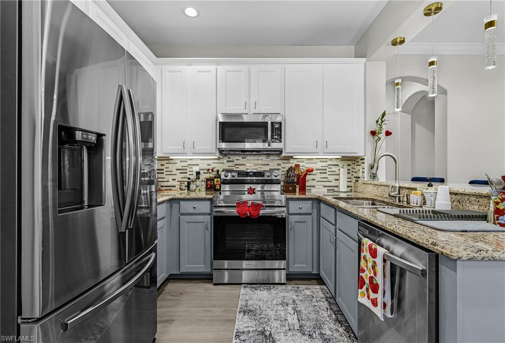 Better than new! Beautifully maintained and recently renovated 2-bedroom + den, 2.5 bath two story townhouse condo located in the desirable gated community of Artesia Naples. This spacious residence features an open great-room layout, high ceilings, neutral finishes, and abundant natural light. The kitchen offers granite countertops, stainless steel appliances, and generous cabinet storage. The primary suite includes dual closets and an en-suite bath with walk-in shower and double vanities. A private screened lanai (custom upgrade) overlooks a peaceful landscaped area, perfect for relaxing or entertaining. Additional features include impact windows and doors, in-unit laundry, an attached two-car garage with EV Charger, and recently replaced mechanicals. Artesia is a low-fee community (NO CDD) with resort-style amenities including a clubhouse, fitness center, community pool, pickleball, billiards, theater room, and walking paths. Cable, internet, landscaping, exterior, and flood insurance are included in the HOA fees. Conveniently located near Marco Island, Downtown Naples, shopping, dining, and Gulf beaches. Pets are permitted with HOA approval. Move-in ready and ideal for full-time or seasonal living.