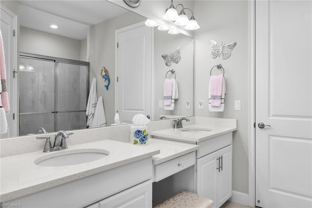 MOVE IN READY! Step into effortless elegance and coastal comfort.... This is Florida living made easy! This charming Villa- style home being offered "turnkey", features 2 bedrooms and a versatile Den perfect for an additional Guest room or Office space. The lovely screened in Lanai backs to a tranquil preserve featuring a private garden area as an ideal space for pets or your own enjoyment. Nestled in the popular Esplanade of Hacienda Lakes ~ a natural gas community~ you will truly enjoy this amazing location, the welcoming community, and being at the crossroads of Marco Island and Naples beaches and iconic 5th Ave. When not dining out at the plentitude of nearby amazing restaurants, enjoy cooking at home in this Chef's delight gas cooking kitchen. Expansive countertops and a breakfast serving bar are ideal for entertaining in this large open concept living area with formal dining space. Laundry is made easy with new touch control LG washer & dryer in the large laundry Rm w/ set tub. The attached 2 car garage offers plenty of storage and a convenient entry. Residents enjoy access to the 6,500 sq ft Clubhouse with 24/7 fitness center, Resistance pool, Lap pool, Hot tub, Yoga studio, Pickleball, Har-Tru Tennis courts, Bocce, playground and Dog parks. Very low HOA fees~ just reduced to $390/ month! LOCATED ON THE HOSPITAL GRID..No Flood needed.Come love owning your own slice of Paradise!