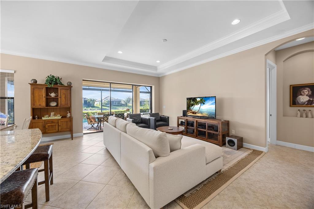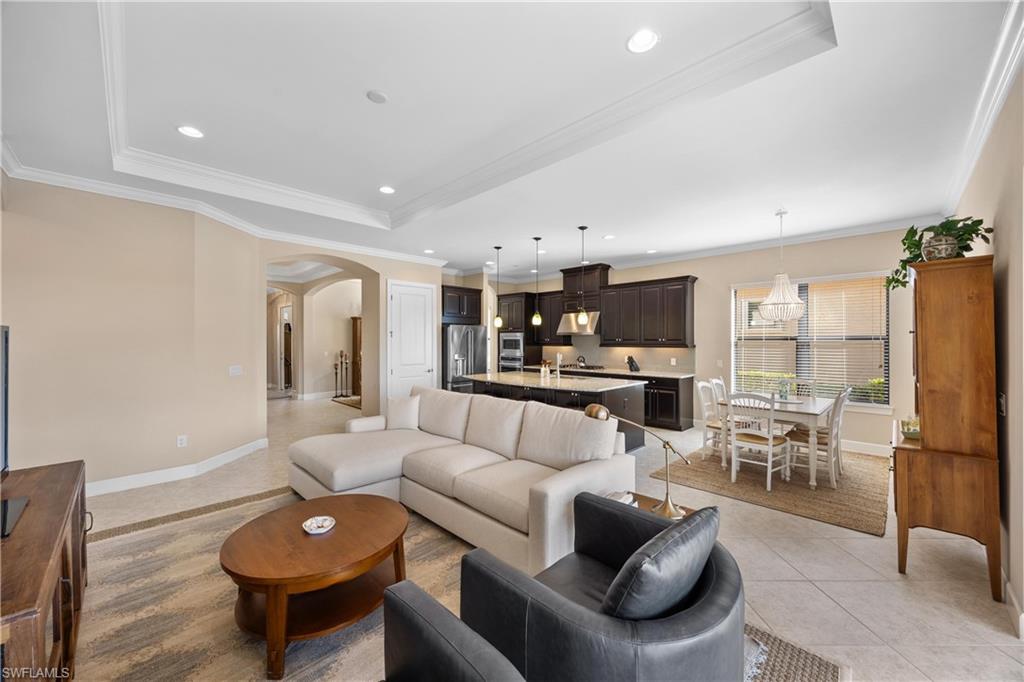 Beautifully finished Farnese model offering 2 bedrooms + den/flex room, 2.5 baths, and a desirable open-concept layout designed for effortless indoor/outdoor living. The kitchen opens to a spacious great room and dining area, creating the perfect space for entertaining. Tray ceilings, 8-foot doors, and thoughtful design details add to the home’s elevated feel. Step outside to an upgraded courtyard with a sparkling pool, custom outdoor kitchen, and covered lanai—ideal for enjoying the Florida lifestyle year-round. Notable improvements include a $51K courtyard upgrade, custom cabinetry, California Closet systems, new lighting, and more. Home is being sold partially furnished for added convenience. With 2,889 total sq. ft. and a two-car garage, this residence offers comfort, style, and flexibility in one of Naples’ sought-after communities.
