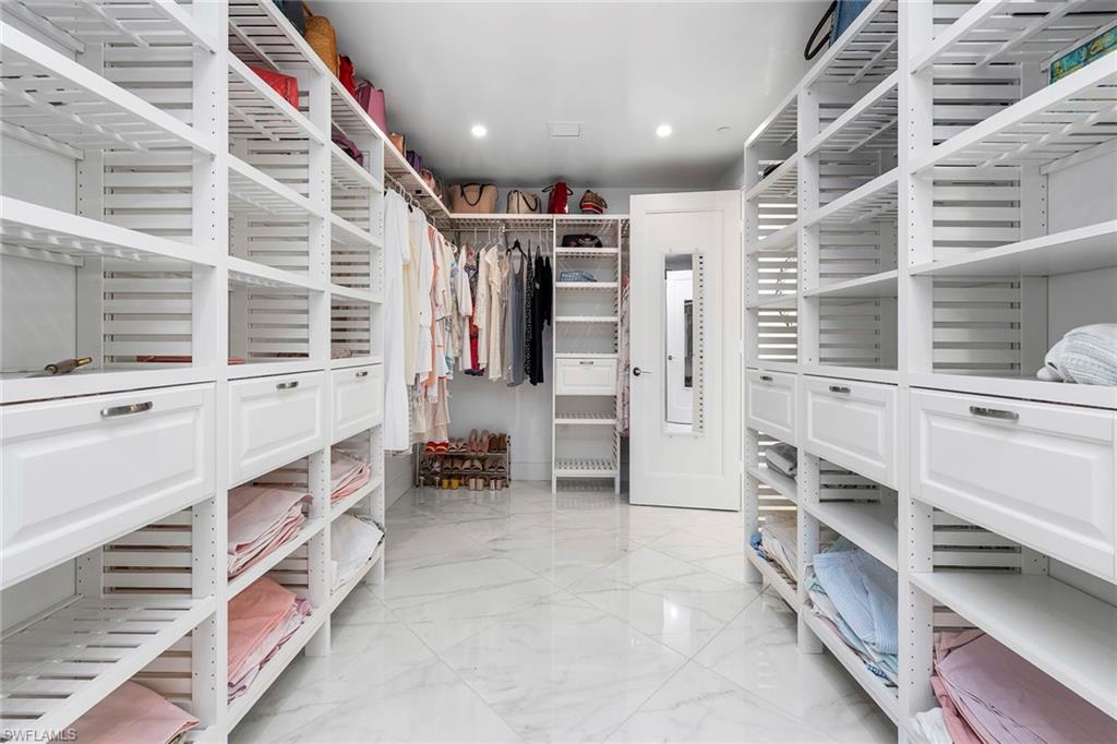 Stunning Kalea Bay Tower 400, 8th-floor luxury residence offering glorious Gulf views from this precious corner unit. This new construction condominium is in one of Naples prestigious and sought-after communities. The four-bedroom, four-bath residence embodies elegant sophistication with modern, timeless features, including gleaming white porcelain marble tile throughout, an amazing custom-designed primary bedroom closet, and exceptional, tastefully curated design with international appeal. This open concept floor plan showcases sparkling designer lighting, floor-to-ceiling impact glass that frames spectacular sunsets, mangrove preserves and twinkling city lights. The chef’s kitchen is equipped with Wolf and Sub-Zero appliances, natural gas range, quartz countertops, custom cabinetry, oversized island and a butler’s pantry with prep sink. The spacious great room opens to a wraparound lanai with glass railings and southwest exposure, offering unobstructed indoor-outdoor living. The primary suite overlooks the water and features a custom walk-in closet and a spa-inspired bath with dual quartz vanities, a walk-in shower and soaking tub. The residence includes a private elevator foyer, solid-core interior doors and ample storage. Tower 400 amenities include a rooftop fitness center, negative-edge pool, sky lounge, grilling area and a 7,500-square-foot rooftop terrace with sweeping views. The residence also comes with assigned garage parking and a secured lobby with an on-site manager and 24-hour security. Ownership includes full access to the 100,000-square-foot Club at Kalea Bay, featuring three resort-style pools, a state-of-the-art wellness center, two open-air bars, the Driftwood Cafe and Salt and Oak Restaurant, tennis and pickleball courts, a beach shuttle and guest accommodations at the Bay Cottages. In North Naples, Kalea Bay is minutes from white-sand beaches, upscale shopping and gourmet dining. This residence is the ideal blend of coastal luxury, architectural sophistication and resort-style living.