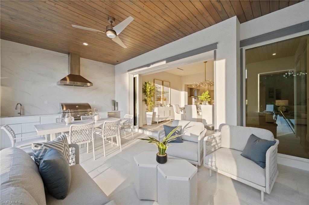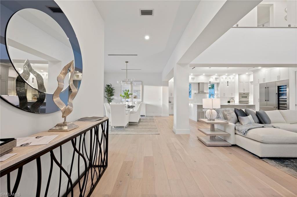 Nestled on an oversized corner lot just one mile from 5th Avenue, this breathtaking new construction home will be sure to please. With over 3,200 square feet of luxurious living space, this residence, crafted by the renowned Wilder Builders of Naples, is being offered fully furnished by Clive Daniel. Featuring 4 generously sized bedrooms, an office, 4.5 bathrooms, soaring ceilings, and an open-concept great room, this home is the epitome of modern elegance. Enjoy seamless indoor-outdoor living with a gourmet kitchen, Thermador appliances, custom cabinetry, detailed trim work, T&G ceiling accents, wood floors, and floor-to-ceiling tile in the bathrooms. The outdoor area is equally impressive, with a fully equipped kitchen, heated pool and spa, and a built-in sauna, all set against lush landscaping on a spacious 160-foot deep lot. The expansive green space creates a private oasis, perfect for enjoying the best of Naples living. Located just east of Royal Harbor, behind the Naples Bay Club, this rare find offers unbeatable proximity to 5th Avenue and the Gulf of Mexico. For even more opportunity, this home can be purchased with the adjacent vacant land at 1972 Frederick Street.