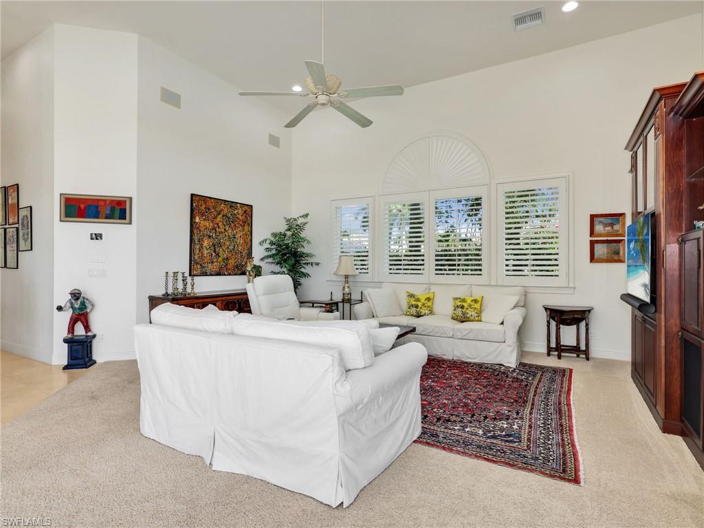 Designed for how people truly live, this striking Kensington home makes an immediate impression through its intelligent layout, offering a rare balance of scale, separation, and seamless indoor-outdoor flow—allowing everyone to spread out while remaining seamlessly connected. A formal living room anchored by a fireplace and elegant coffered ceilings sets a refined tone, while an executive home office or flex space offers privacy for work or study. The family room mirrors the formal living area in scale, creating a second gathering space that feels equally substantial. Formal dining is complemented by a relaxed breakfast room, perfectly positioned for casual mornings or intimate gatherings. Sliding doors open to a sprawling lanai where indoor and outdoor living converge. The infinity-edge pool appears to melt into sweeping lake and golf course views overlooking the 16th hole, enhanced by a panoramic pool cage for uninterrupted sightlines. A summer kitchen with built-in grill makes entertaining effortless, while the outdoor setting feels both private and connected to the surrounding landscape. The residence features 4 bedrooms and 4.5 baths, all ensuite for ultimate privacy. A private 1-bed, 1-bath casita sits just off the pool area with its own lanai access, further elevating the home’s flexibility for guests or extended stays. Additional highlights include a 3-car garage, circular driveway, impact windows or storm shutters, a new whole-house generator with propane tank, new pool heaters (to be installed), and a solar pool system—providing both peace of mind and efficiency. This is a home that lives beautifully at every scale—elegant yet comfortable, expansive yet intentional—set within one of Naples’ most established golf communities at Kensington Golf & Country Club.