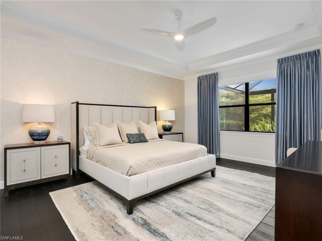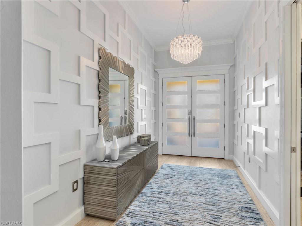 CLIVE DANIEL DESIGNED and thoughtfully customized with high-end upgrades beyond standard builder offerings, this exceptional Corkscrew Shores residence offers elevated designer finishes and resort-style outdoor living. Located on a quiet cul-de-sac street off the main drive, this Stonewater estate home offers a split-bedroom floor plan with 3-bedrooms, 3-FULL baths & a 3-car garage featuring a CUSTOM POOL & OUTDOOR KITCHEN. SEE ATTACHED LIST OF CUSTOM UPGRADES. Perfectly positioned on an oversized lot offering a PRIVATE LAKE & PRESERVE VIEW with NO HOMES BEHIND! Exceptional curb appeal includes a stone-accented exterior, rare gray paver driveway, custom landscaping, landscape and driveway lighting, & a freshly painted exterior (2022). This home features WHOLE HOUSE IMPACT WINDOWS & DOORS, a custom impact-rated front door, & buried gutter downspouts. Interior features include volume ceilings 12’ ceilings, SOLID-CORE 8’ doors, crown molding throughout, custom window casings, CUSTOM LIGHTING, and CUSTOM WALL COVERINGS & WINDOW TREATMENTS from Clive Daniel. CUSTOM FURNISHINGS ARE NEGOTIABLE. Additional interior upgrades include tray ceilings, MOTORIZED BLINDS on programmable timers in all bedrooms & the den, plus a CENTRAL VACUUM SYSTEM. The main living areas & baths feature large-format tile, while Italian ebony-stained wood floors enhance all bedrooms & the den. The expansive great room is highlighted by a coffered ceiling and a CUSTOM STONE FEATURE WALL with a FIREPLACE, 85” TV, & floating shelves with integrated lighting. WHOLE HOUSE AUDIO WITH IN-CEILING SONOS SPEAKERS, SOUNDBARS, & Wi-Fi extenders. A chef’s kitchen features white shaker cabinetry, a contrasting island, quartz countertops, marble backsplash, KitchenAid appliances, built-in refrigerator, custom walk-in pantry, & a striking CUSTOM GLASS WINE WALL. The spacious primary suite includes a spa-like bath with TILED VANITY WALL, custom mirrors, extended walk-in shower with floor-to-ceiling tile, & walk-in CUSTOM CLOSET w/ BUILT-INS. The guest baths also offer floor-to-ceiling tile & glass shower enclosures. Pocket doors by the 2nd & 3rd bedrooms create private suites. A stylish den with glass French doors provides flexible living space. The spectacular outdoor living area features a PANORAMIC SCREENED LANAI, PORCELAIN TILE FLOORING, WOOD CEILINGS & WALLS, SONOS in-ceiling speakers, & a FULLY EQUIPPED CUSTOM OUTDOOR KITCHEN. The CUSTOM HEATED SALTWATER POOL with water feature & glass tile accents overlooks a PRIVATE LAKE & PRESERVE. Additional highlights include a WHOLE HOUSE GENERAC 14KW GENERATOR & a BURIED PROPANE TANK. Located in Corkscrew Shores, a premier lakefront resort-style community with NO CDD! Enjoy a clubhouse, fitness & aerobics studio, a resort-style pool, tennis, pickleball & waterfront dining at The Captain’s Club. This one-of-a-kind residence, loaded with premium upgrades & exceptional private outdoor living, is located in one of Estero’s most sought-after communities!