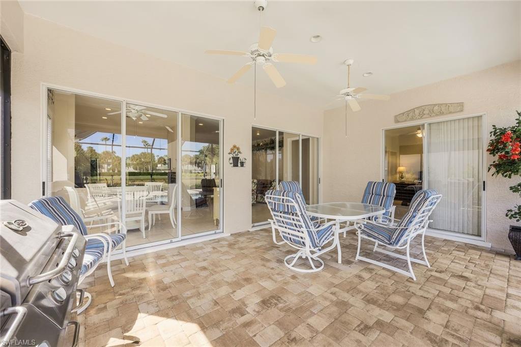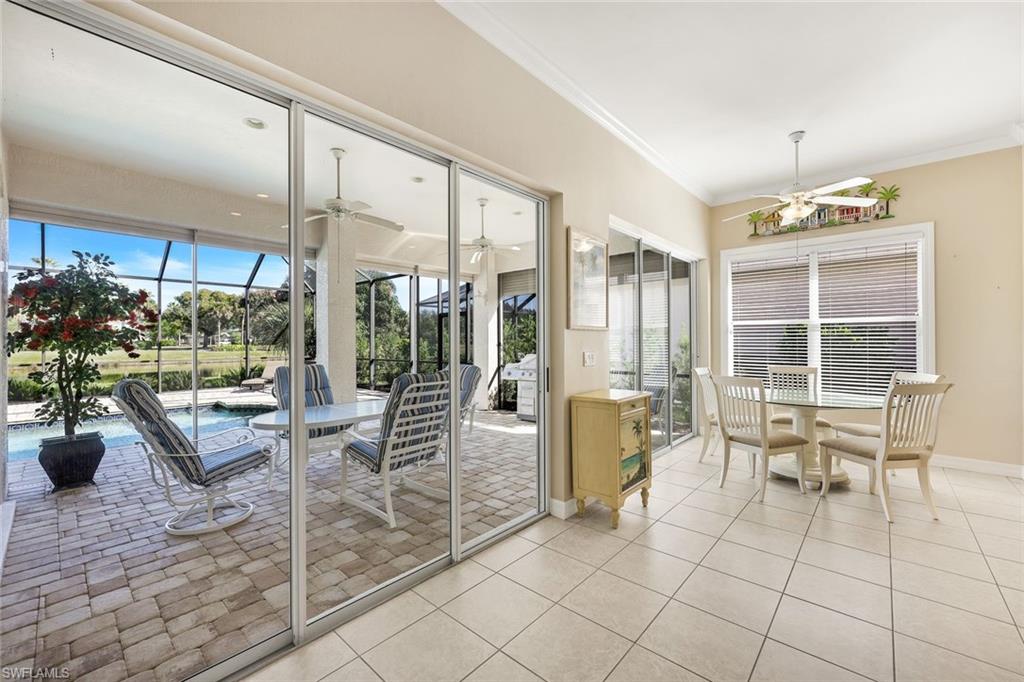 You will love this meticulously maintained St-Tropez floor plan home, offered turnkey within the Capri community at Pelican Landing. This residence features 3 bedrooms, 2.5 bathrooms, and a den, with peace of mind provided by a new roof, A/C, and water heater all replaced less than two years ago. The kitchen is highlighted by elegant granite countertops, and the outdoor space is perfect for relaxing by the pool while enjoying a beautiful lake view. Pelican Landing offers an incredible lifestyle with amenities including a private beach island via community ferry, tennis, pickleball, bocce, a sailing center, and a kayak park, with optional golf memberships also available.