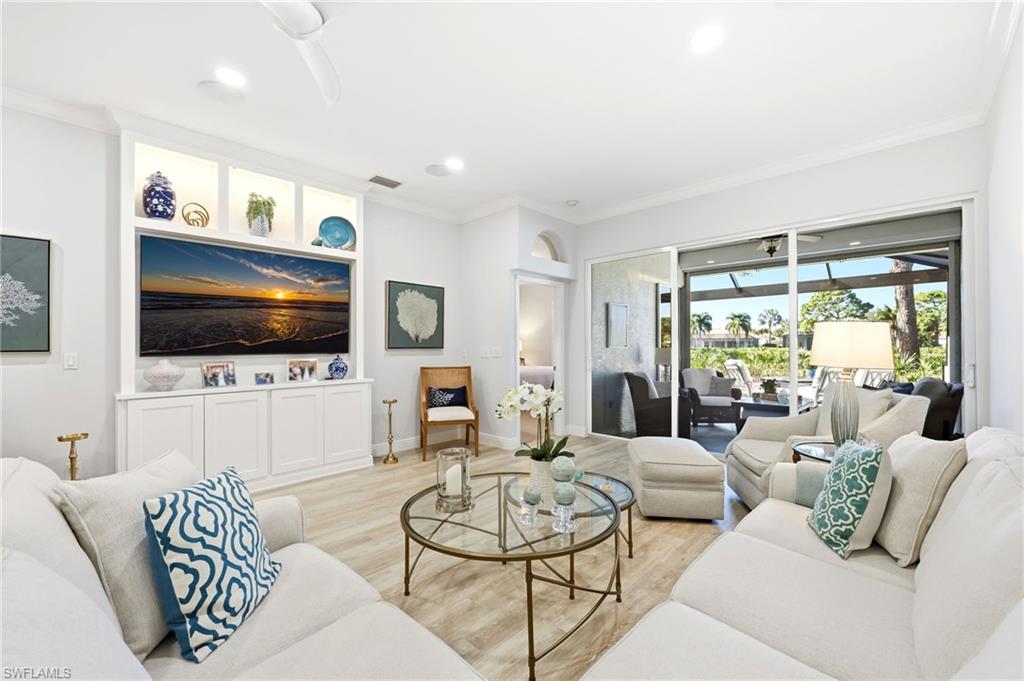 Welcome to Highland Woods Golf and Country Club. This impressive Cheshire villa is pristine. Totally renovated from top to bottom. Kitchen has quartz countertops, stainless steel appliances and beautiful built in cabinetry. Luxury vinyl flooring throughout the living area. Both baths have been updated as well. The split floor plan ensures ample space and privacy for family and guests. All windows and sliders are hurricane impact rated and are treated on the inside with plantation shutters. The roof is less than four years old and the air conditioning unit was replaced in November 2025. The spacious lanai with its picture window screening makes for great entertaining space. Highland Woods is an amenity rich community with a resort style pool, golf, tennis, pickleball, bocce, two restaurants and fitness center. If an active lifestyle is something you want this is the place for you.