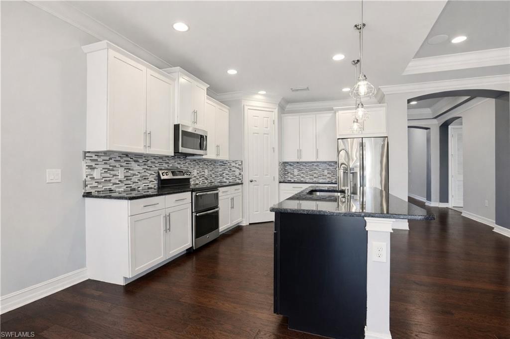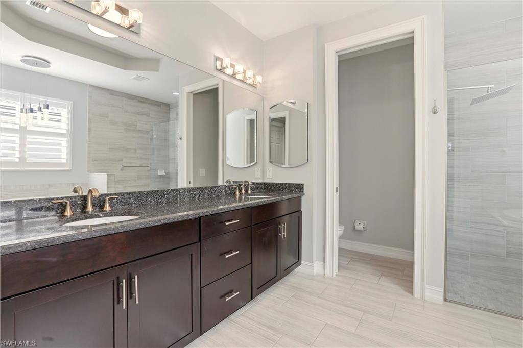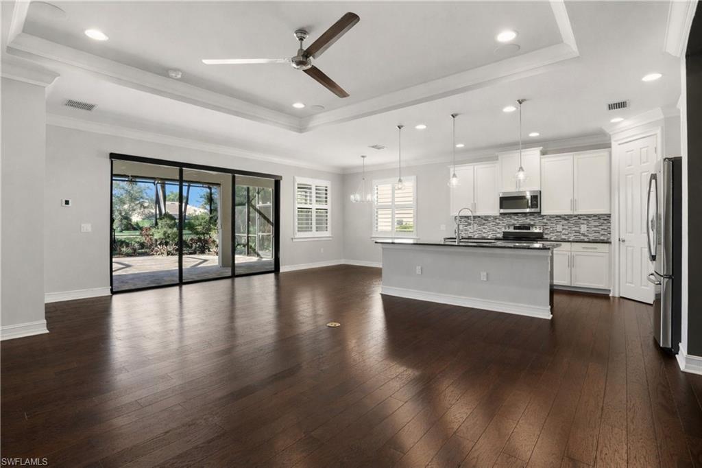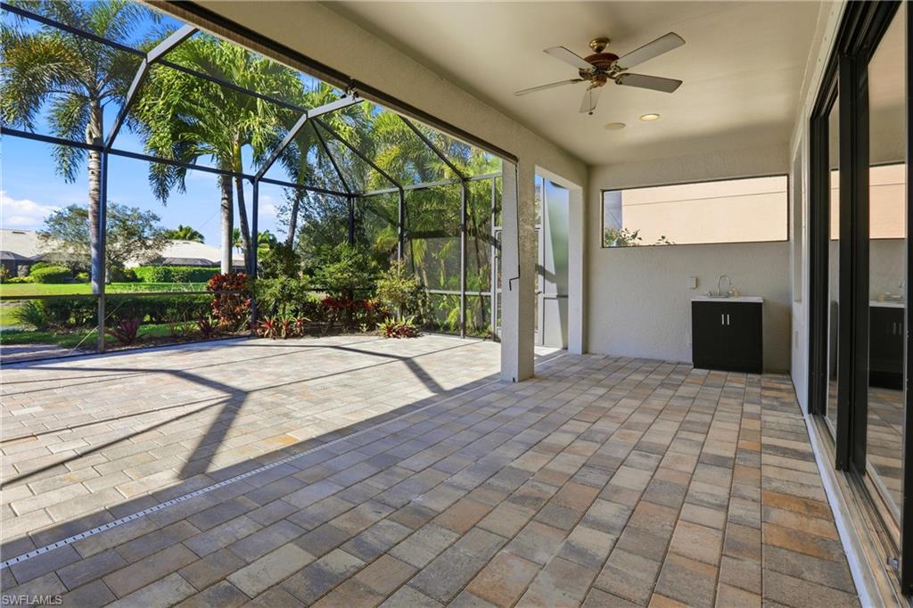 Rarely available 3BR/2BA + Den home featuring the desirable one-story Edison open-layout floor plan with an extended garage offering additional storage. Enjoy the comfort of a private saltwater “Cocktail Pool” (Mini Pool) on an oversized pool deck with scenic lake views. The home had been recently painted inside and out. Upgrades include granite countertops, 42" white cabinetry, upgraded appliances, 7" crown molding, tray ceilings, custom interior paint, and dark wood flooring in the main living areas. Additional features include living room and lanai surround sound speakers, upgraded lighting, plantation shutters, an oversized covered lanai, and more. The home is wired for a lanai TV, includes an outdoor kitchen rough-in, and is equipped with an Aqualink pool control system. Nestled in the gated community of Paloma, conveniently located west of I-75, this residence offers no CDD fees and low HOA dues. Paloma features a clubhouse with banquet space, a spacious community pool, fitness center, bocce, and tennis courts, and is ideally located near beaches, shopping, dining, RSW International Airport, and all that Bonita Springs and Southwest Florida have to offer.