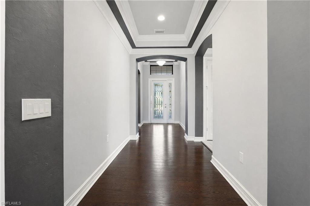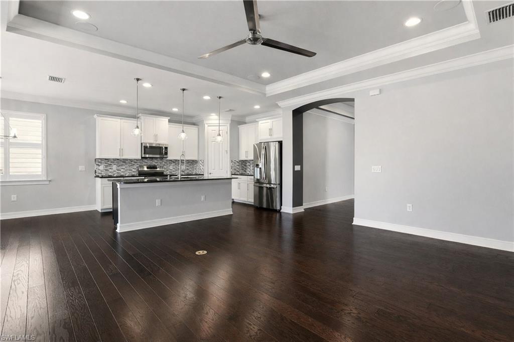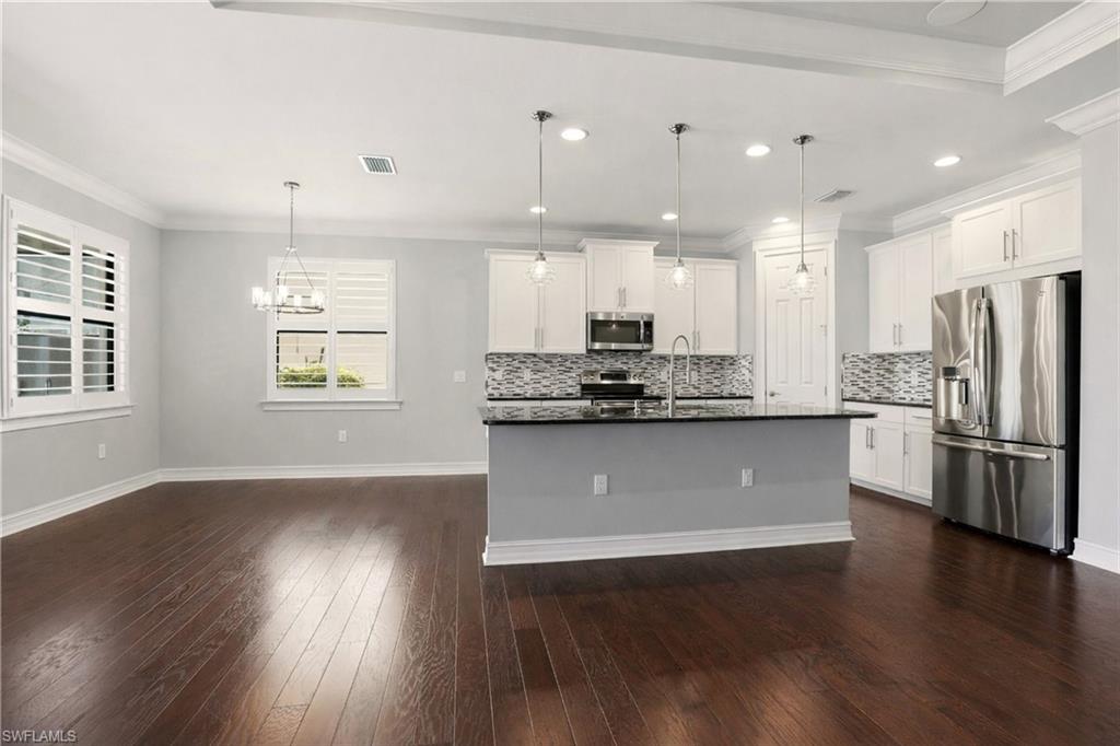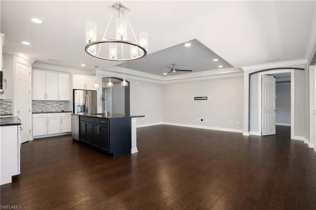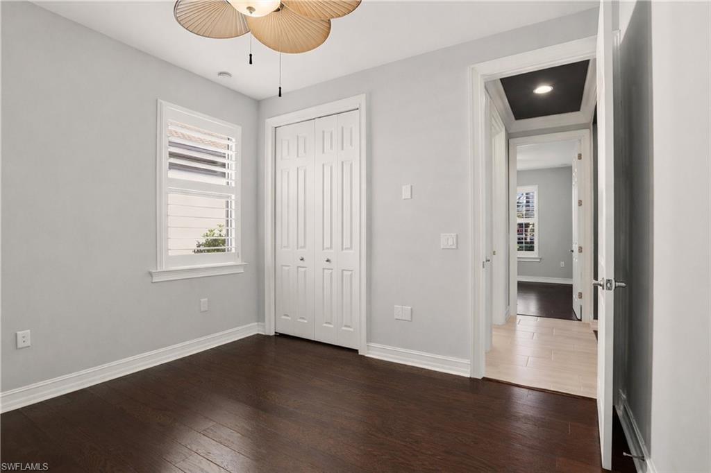 Rarely available 3BR/2BA + Den home featuring the desirable one-story Edison open-layout floor plan with an extended garage offering additional storage. Enjoy the comfort of a private saltwater “Cocktail Pool” (Mini Pool) on an oversized pool deck with scenic lake views. The home had been recently painted inside and out. Upgrades include granite countertops, 42" white cabinetry, upgraded appliances, 7" crown molding, tray ceilings, custom interior paint, and dark wood flooring in the main living areas. Additional features include living room and lanai surround sound speakers, upgraded lighting, plantation shutters, an oversized covered lanai, and more. The home is wired for a lanai TV, includes an outdoor kitchen rough-in, and is equipped with an Aqualink pool control system. Nestled in the gated community of Paloma, conveniently located west of I-75, this residence offers no CDD fees and low HOA dues. Paloma features a clubhouse with banquet space, a spacious community pool, fitness center, bocce, and tennis courts, and is ideally located near beaches, shopping, dining, RSW International Airport, and all that Bonita Springs and Southwest Florida have to offer.