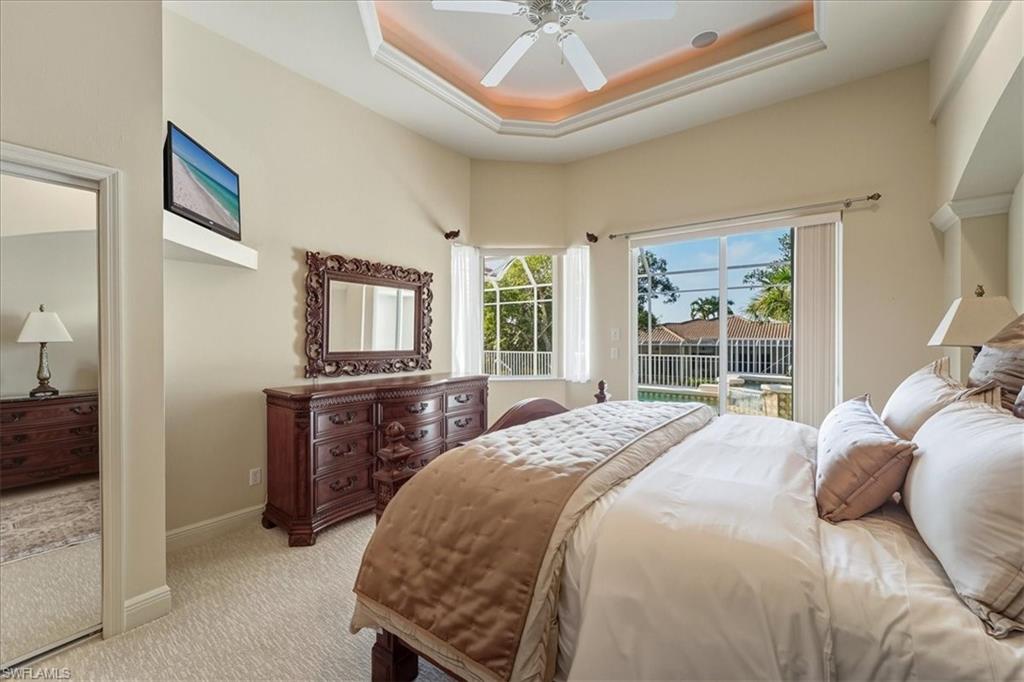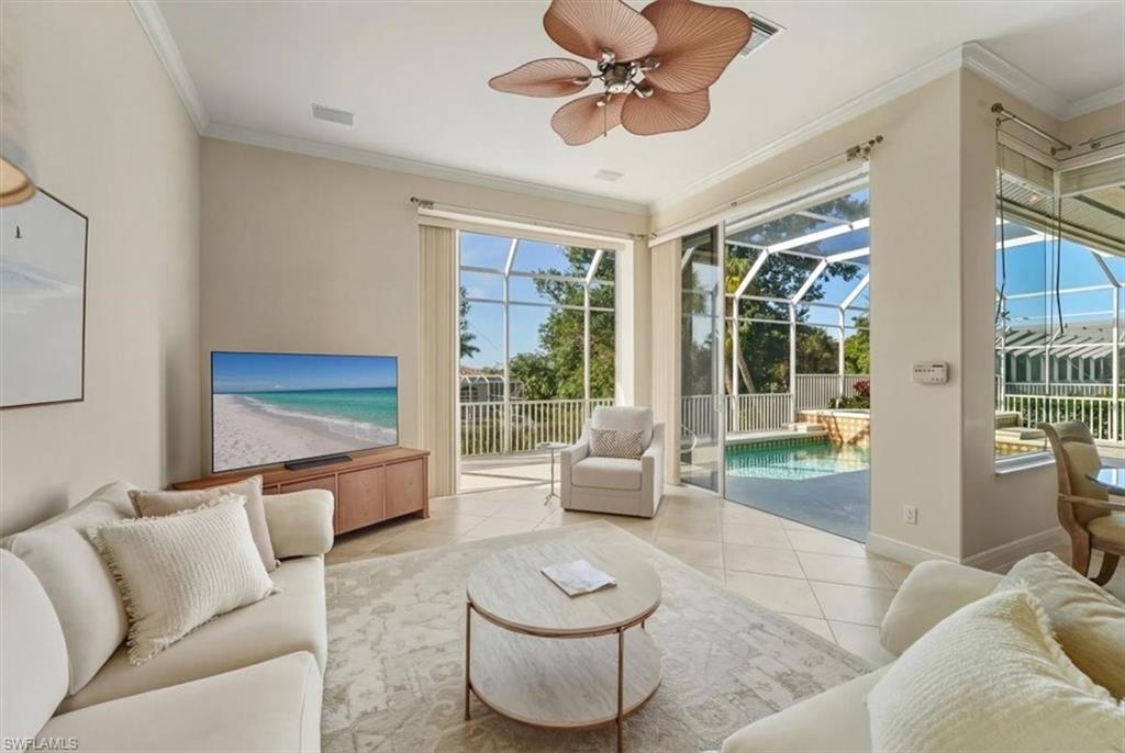 Located within the prestigious Estates subdivision on Marco Island, this impeccably cared-for custom residence captures both the eye and the heart. Built by Sunset Builders and thoughtfully designed to impress, the home welcomes you with dramatic volume ceilings, an expansive open floor plan, and an abundance of oversized windows and 10-foot sliding glass door walls. Together, they flood the interiors with natural light and create a seamless connection to the outdoors, immediately setting the tone for refined, effortless coastal living. Elevated at an impressive 22.5 feet above sea level, the residence offers peace of mind with no flood insurance requirement. Spanning nearly 2,500 square feet under air and set on a generous half-acre parcel, this property represents an exceptional value. Thoughtfully designed for effortless single-level living, the home features gracious formal and casual spaces including a formal dining room, elegant living room, inviting family room, and a private den, ideal for work or quiet retreat. The primary suite is a luxurious sanctuary, highlighted by an oversized walk-in closet and a spa-inspired bath complete with a soaking tub. Outdoors, western exposure delivers breathtaking sunset views from the resort-style pool and spa, enhanced by a tranquil waterfall feature and outdoor shower—perfect for enjoying Florida’s indoor-outdoor lifestyle. Additional highlights include a circular brick-paver driveway, side-entry garage, and full hurricane protection. Nestled among other distinguished estate homes, this property offers privacy, lush surroundings, natural wildlife, and an ideal setting for biking and outdoor recreation. This is a home not to be missed!