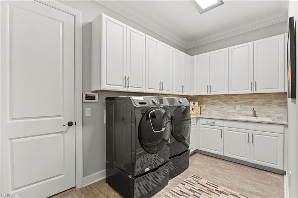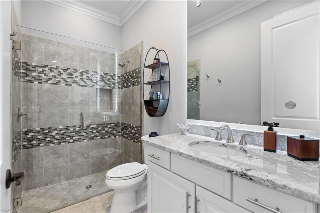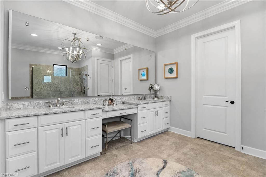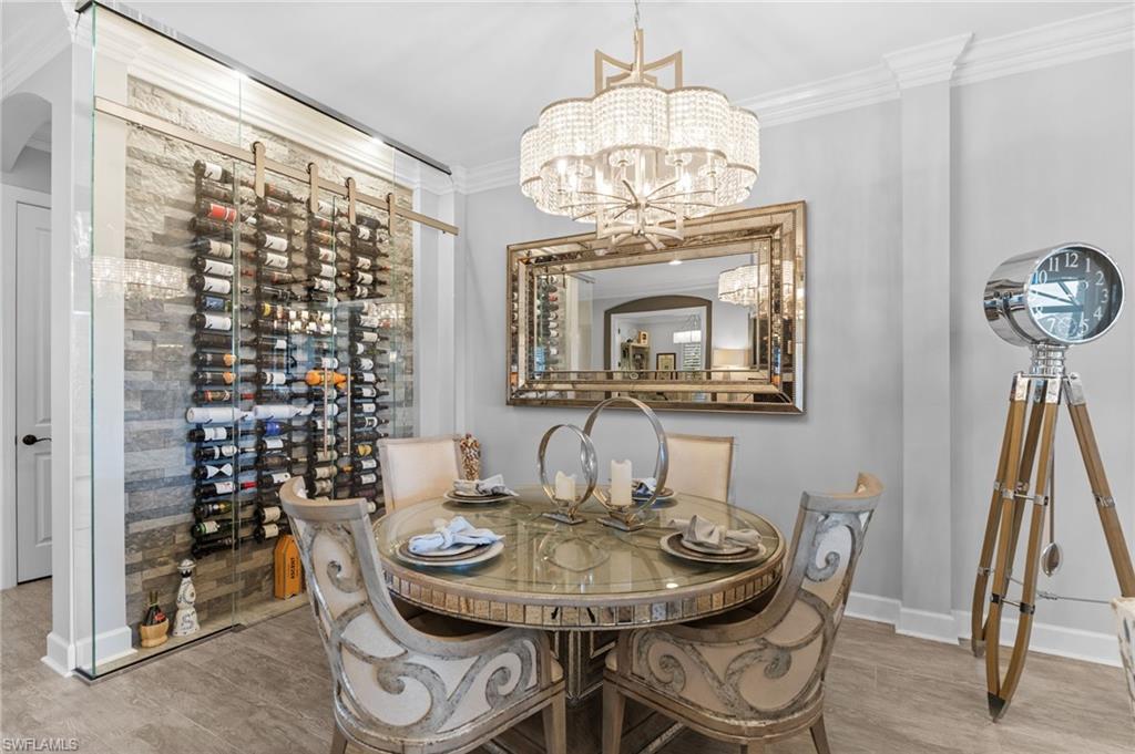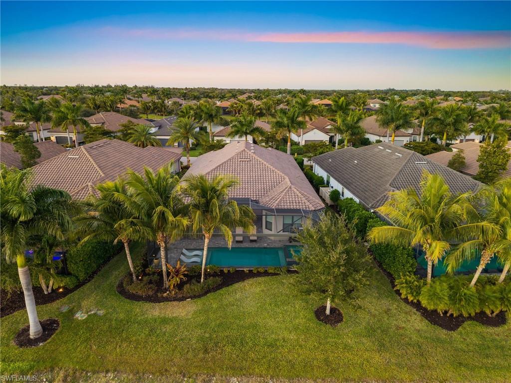 Experience a truly one-of-a-kind, turnkey artist-inspired residence in the prestigious enclave of Oyster Harbor at Fiddler’s Creek. Dramatic lighting has been thoughtfully designed to showcase art throughout the home, while custom accent walls, ceilings, and bathrooms elevate every space with creativity and sophistication. This stunning 3-bedroom plus den, 3-bath home offers rich architectural details including extensive custom woodworking, tray ceilings, plantation shutters, and layered accent lighting. The designer kitchen features custom white cabinetry with accent lighting, quartz countertops, premium appliances, and an icemaker—perfect for effortless entertaining. The adjacent dining area highlights a dramatic enclosed wine wall with a striking stone backdrop, while the living room impresses with a custom feature wall and expansive sliding doors that open seamlessly to the lanai. The private owner’s suite showcases a spectacular custom walk-in closet and spa-inspired bath. Outdoors, the resort-style lanai provides an extraordinary setting for relaxation and entertaining with a heated pool and spa, water kettles, a natural gas stone fireplace, outdoor kitchen with gas grill, panoramic screen enclosure, and beautifully upgraded landscape and pool lighting overlooking tranquil waterfront views. Significant enhancements include professionally designed landscaping and an extensive exterior lighting package that creates a stunning evening ambiance. Modern upgrades provide peace of mind with impact doors and windows, camera system, whole-home sound system, and water softener. Notable features include a fully air-conditioned two-car garage with custom cabinetry, a tile roof, and meticulous attention to detail throughout. Residents enjoy the world-class amenities of Fiddler’s Creek, including the 54,000-square-foot Club & Spa with two on-site restaurants, resort pools, fitness center, and tennis, pickleball, and bocce courts. Optional golf, beach, and boating memberships complete the luxury lifestyle. Ideally located just minutes from Marco Island’s beaches and only 15 minutes to downtown Naples and Fifth Avenue South.