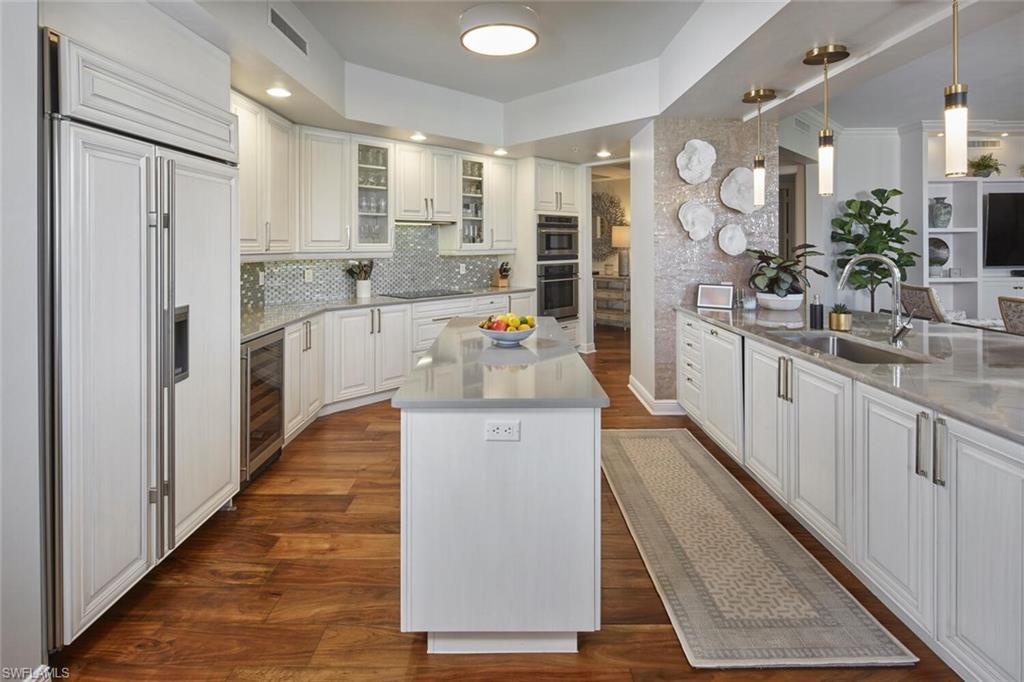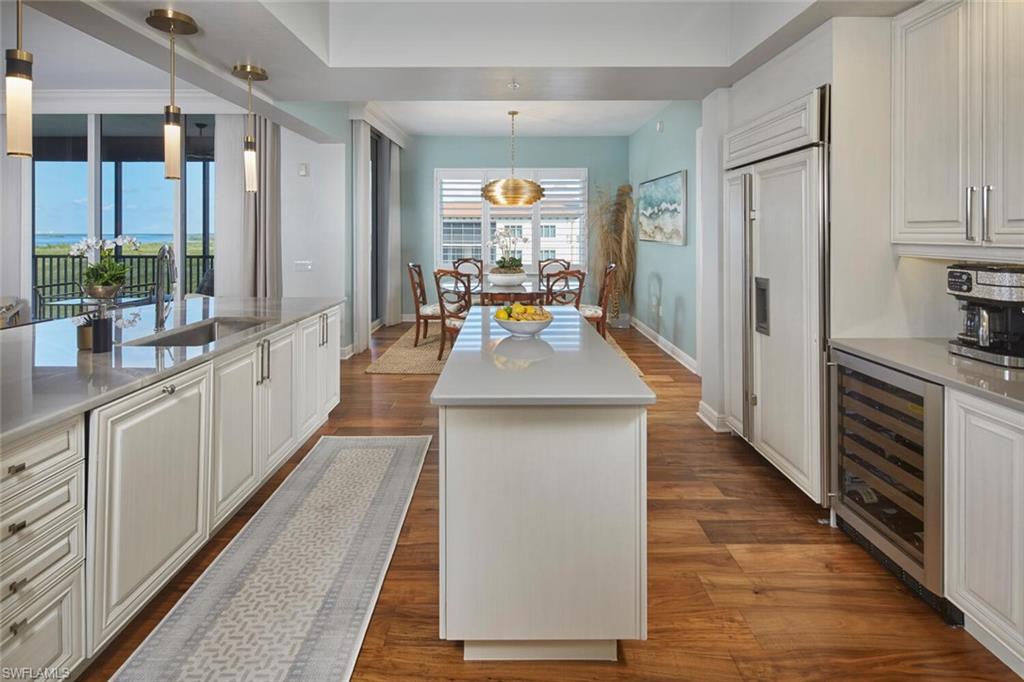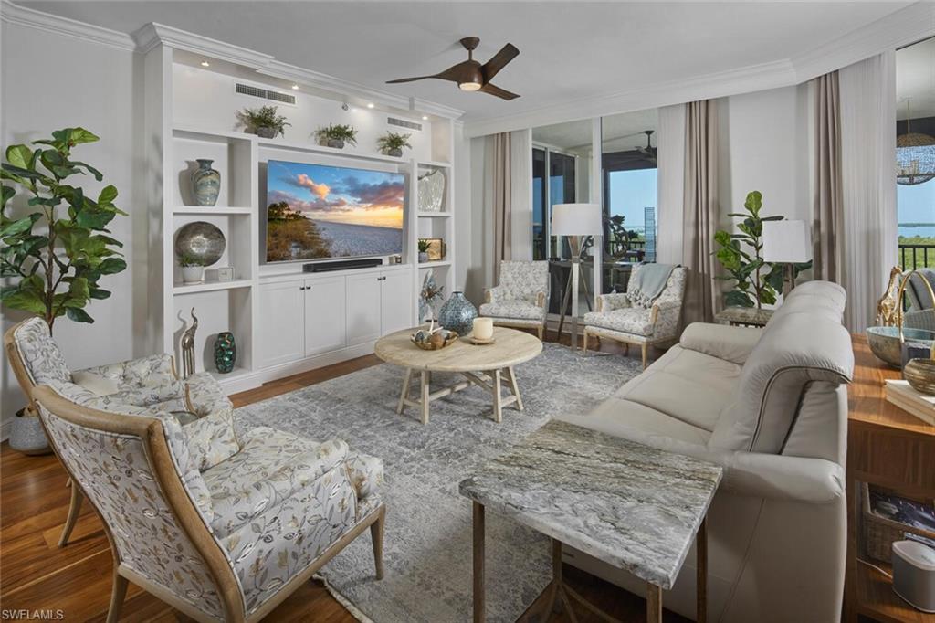 An exceptional opportunity awaits at Castella —a corner penthouse residence that defines effortless luxury. Impeccably renovated and truly move-in ready, this home invites you to arrive and simply enjoy. Every detail has been thoughtfully curated, featuring brand-new finishes throughout, including a redesigned utility room with new washer and dryer, a stunning kitchen renovation, and exquisite new flooring. Rich acacia wood, a prized tropical hardwood, is paired beautifully with sleek, cool-toned porcelain tile, creating a sophisticated yet warm coastal aesthetic. The bathrooms have been completely reimagined with today’s most refined transitional design, showcasing exceptional craftsmanship and attention to detail. The result is a residence that feels better than new. Offered fully furnished, the home is further enhanced with automatic storm shutters, delivering both convenience and peace of mind. Castella is The Colony’s distinctive mid-rise, surrounded by protected preserve lands and oriented to capture east-facing views over Estero Bay with glimpses of the Gulf. As one of Castella’s most coveted offerings, #2604 stands apart as a premier penthouse residence—a rare blend of elegance, privacy, and timeless coastal luxury.