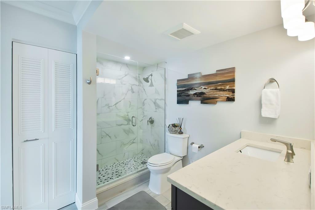 Experience the magic of the Marco River like never before. Breathe in the salt air and let your worries drift away, as you relax to the sights and sounds of the passing boats and wildlife that call your backyard home. Welcome to paradise, welcome to Marco Towers 505! Words can not express how spectacular the panoramic water views are and photos do not do it justice. This one bedroom, one bath condo has been completely updated from the floor to the ceiling, with no expense spared. The spacious floor plan provides over 1,050 sq.ft. of living area with a large balcony to give you lots of outdoor space to take in the breath-taking views of the 10,000 Islands, Marco Bridge, Big Marco River, Hideaway beach and the Gulf of America. Imagine waking up in your bed to the sound of dolphins splashing in the water or birds diving and feeding on the baitfish below. The bedroom is spacious with sliders out to the balcony and a large bathroom with two vanities and a big walk-in shower. The kitchen has custom cabinets, quartz counters and stainless appliances that are sure to please any chef. Fishing off the dock is truly world class and makes catching a big Tarpon , Snook or fish of a lifetime, not only possible, but easy to do on a daily basis. The large heated swimming pool is the perfect place to lounge in the sun and enjoy the fresh breeze that’s always there to greet you. When you’re done working on your tan, grab a cold beverage and kick back in the shade of the tiki hut, sitting on the water’s edge, where you can watch all the action. Everyday, whether you are in the living room, kitchen or the bedroom, you will be captivated with unparalleled water views, beautiful sunrises and amazing sunsets that you will never forget. You can literally watch the dolphins playing, birds diving, boats passing by and everything else that makes the Marco River so magical, right from your living room. And the views are just as mesmerizing at night as they are during the day. Also included is a covered carport to keep your car protected from the sun and elements. Isles of Capri is a subtropical island that boasts and abundance of wildlife, four great restaurants and three marinas. Located one mile from Marco Island & only 20 minutes away from Downtown Naples with its sophisticated shopping & five star dining. Our area is famous for its white sand beaches, world class fishing & boating and fantastic golfing. Capri is the perfect place to sit back, relax, unwind and let the sights, sounds and smells sooth your mind, body and soul