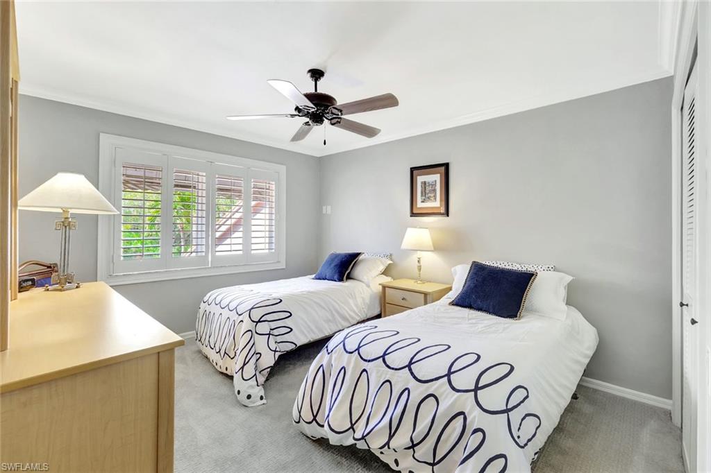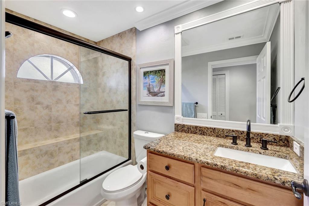 Spanning 2,900 square feet, this extensively upgraded Aberdeen floorplan stands out as one of the best values in Naples, delivering exceptional accommodations with four bedrooms, two and a half bathrooms, and a private pool set against serene lake and golf course views. At the heart of the home is a fully reimagined kitchen, thoughtfully designed with all new cabinetry, a custom quartz island, Red Medallion Series KitchenAid appliances, built in organizers, and refined finishes that balance beauty and function. The open layout flows effortlessly to the outdoor living area, where a paver lanai and saltwater pool, enhanced by new pool equipment in 2022, offer a relaxing setting for morning coffee, laid back afternoons, and evening entertaining. For peace of mind and year round comfort, the home is equipped with electric storm shutters, a new A/C system installed in 2023, and a private, secondary irrigation system serving the front entry courtyard. Upstairs, a rarely found 8' x 10' bonus room adds valuable storage or flexible space, while the thoughtful separation of bedrooms provides excellent privacy for guests and family alike. The great room makes a striking impression with soaring 20 foot ceilings and elegant architectural detailing, including crown molding, custom wall framing, and a wood burning fireplace. A 2.5 car/golf cart garage easily fits two vehicles and a personal cart. Residents enjoy an Equity Social Membership to the Quail Village Golf Club, included with HOA fees, which provides access to the newly renovated restaurant, community pool, unlimited summer golf, six rounds in season, tennis, pickleball, bocce, and more. Full Golf Memberships are optional and available for those seeking year round play. As the largest floorplan in the community, this move in ready home delivers scale, upgrades, and a lifestyle ready for its next owners to enjoy.