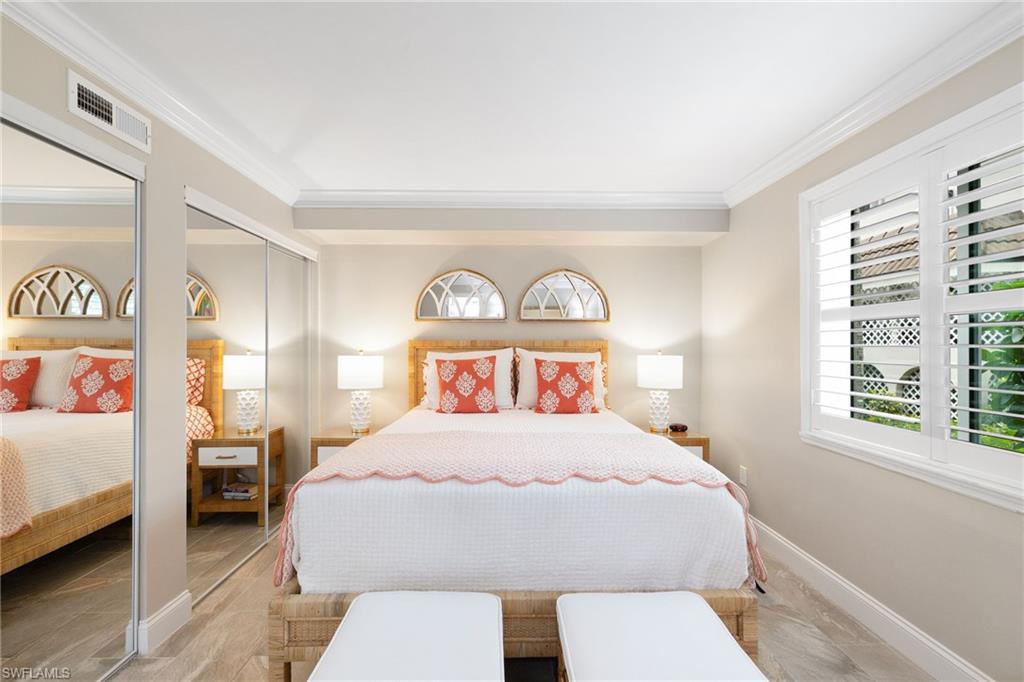 Nestled in the heart of picturesque Olde Naples, embrace the ideally located serene ambiance of the gated Castleton Gardens. The surrounded tranquil banyan tree-lined courtyard offers an excellent location being one block to the legendary Tin City waterfront district, two blocks to Cambier Park, three blocks to luxurious 5th Avenue South shops and dining scene, walking distance to Naples Art Institute, 3rd street South and Cambier Park. This charming one bedroom and one bathroom condo has been thoughtfully designed in a coastal breezy style offering ultimate style and comfort. The unit offers many new upgrades including - brand new stainless steel appliances, plantation shutters, granite countertops, renovated full bathroom and kitchen, new tankless hot water heater, new A/C(2022), new waste pipes, new electric scheduled for this year(Assessment already paid), new refrigerator & dishwasher, large bedroom closet, in-unit washer/dryer and Impact resistant windows to name just a few. Every inch has been completely renovated! Plans for courtyard renovation to be discussed at annual Feb board meeting! Castleton Gardens has a very flexible rental policy - maximum 12 times per year, 30 day minimum - making it a wonderful opportunity for not just seasonal or full time residents but also investors. In addition, Castleton Gardens allows up to two pets with a 50lb weight limit - hard to find in downtown Naples! Just outside your front door you will find a heated resort-style pool, spa, gazebo, grilling area and an extra storage locker for any additional belongings. Your ultimate Olde Naples charming and relaxing home amidst scenic residential streets awaits! Come see for yourself!