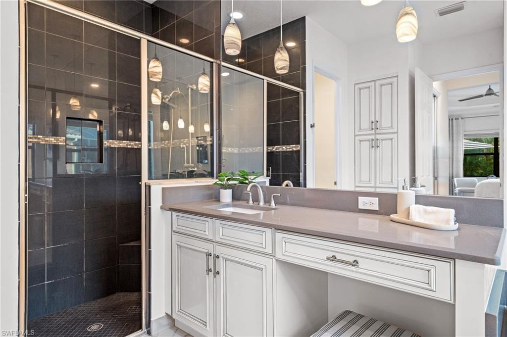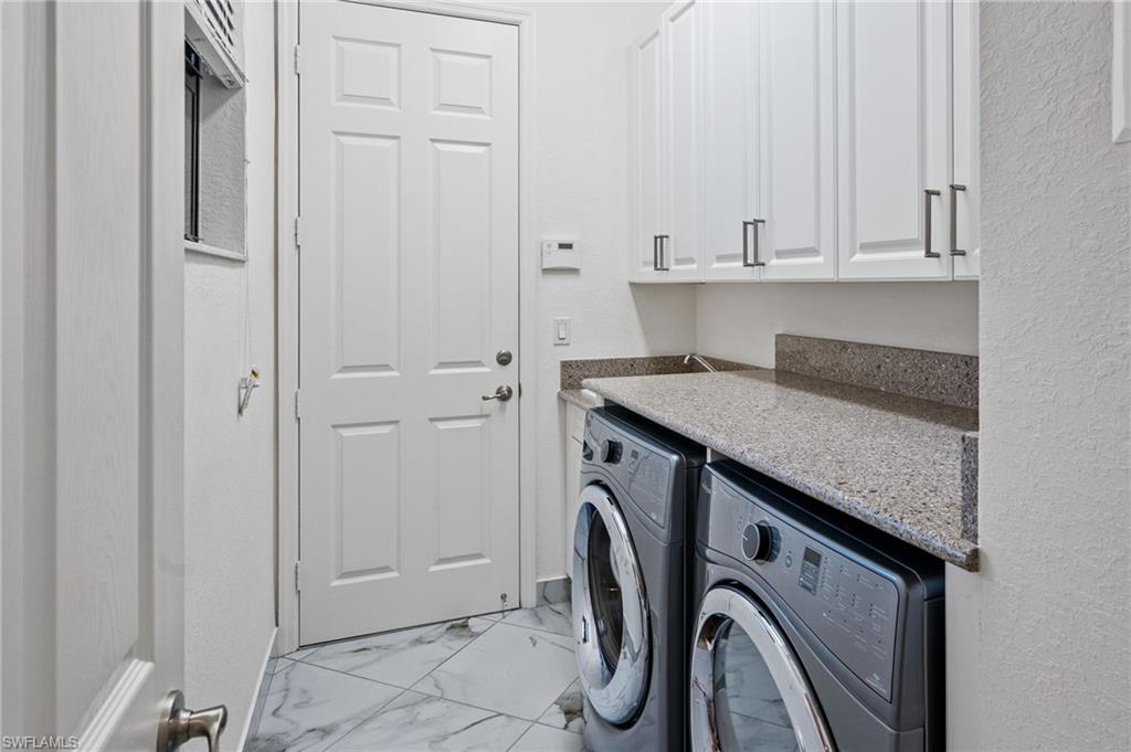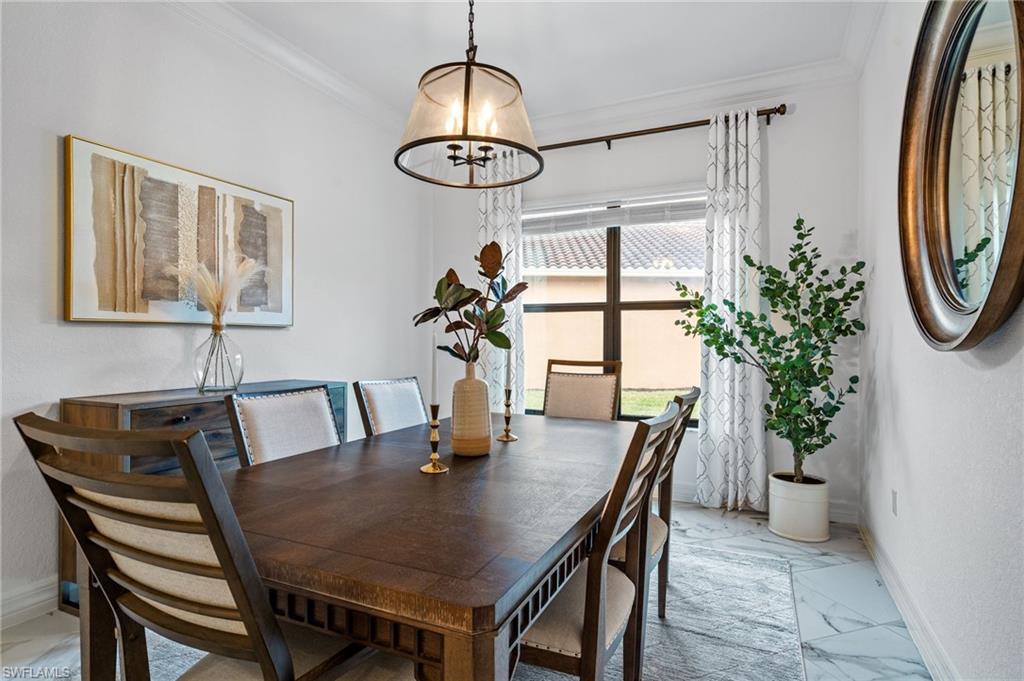 ONE OF THE LARGEST LOTS IN MARBELLA ISLES – CUSTOM ZERO-ENTRY POOL AND SPA – FULLY FENCED, OVERSIZED YARD! This exceptional Marbella Isles residence offers a rare opportunity to own one of the largest lots in the community. Enjoy unmatched privacy and generous space between neighbors on this pie-shaped .32-acre homesite within one of North Naples’ most coveted gated communities. An EXPANSIVE OUTDOOR LIVING area features a custom zero-entry pool and spa, a fully fenced oversized yard, and a spacious screened lanai—ideal for seamless indoor–outdoor living and entertaining. This highly sought-after Tribeca floor plan offers 3 bedrooms plus a den, 2.5 baths, and a MODERN OPEN LAYOUT perfect for full-time living or a seasonal retreat. Built in 2016, the home has been refreshed with NEW INTERIOR PAINT and BRAND-NEW CARPETING IN ALL BEDROOMS, along with sleek tile flooring, updated lighting, and refined finishes throughout. The open-concept living and dining areas showcase elegant woodwork and designer touches, while the kitchen features a large island with quartz countertops, stainless steel appliances, ample cabinetry, and generous storage. The luxurious primary suite includes DUAL CUSTOM WALK-IN CLOSETS and a serene en-suite bath with dual vanities, a soaking tub, and elegant lighting.Marbella Isles is an amenity-rich gated community with a clubhouse, fitness center, resort-style pool with waterslides, kiddie pool, tennis, pickleball, volleyball, and half-court basketball. Ideally located just north of Pine Ridge Road between Livingston and Airport-Pulling, you are MINUTES FROM NAPLES’ BEACHES, Mercato, downtown Naples, and just 25 minutes to Southwest Florida International Airport. THIS PROPERTY QUALIFIES FOR A 1% LENDER INCENTIVE IF USING PREFERRED LENDER — INQUIRE FOR MORE DETAILS (several renderings that showcase furniture have been virtually staged.)