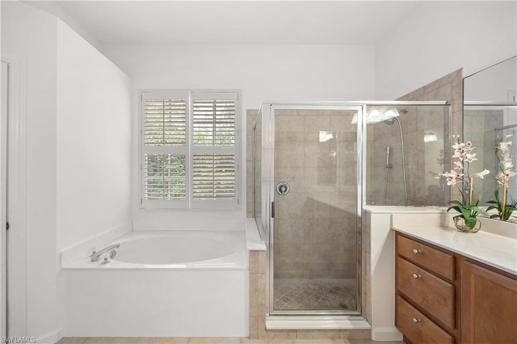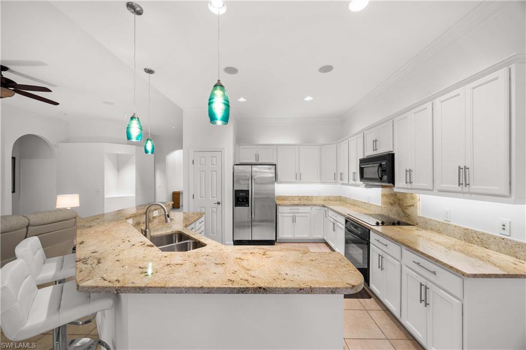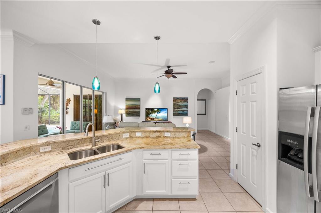 Welcome to Delasol—one of North Naples’ most desirable low-density gated communities. This 3 bedroom, 2 bathroom residence offers a spacious split-bedroom floor plan with a heated saltwater pool and spa overlooking a private preserve setting. Interior features include tray ceilings, plantation shutters, custom crown molding, tile flooring throughout (no carpet), updated kitchen cabinetry, granite countertops, and a generously sized primary suite with double closets and a large bath. Glass sliders create seamless indoor-outdoor living to the screened lanai, where lush foliage provides tranquility and privacy. The home also includes a 2-car garage and fresh interior paint. Delasol offers residents an amenity-rich lifestyle with a clubhouse, updated fitness center, heated community pool and spa, lighted tennis & pickleball courts, basketball, and a playground—all with low HOA fees and no condos within the community. Conveniently located near top-rated schools and just minutes to shopping, dining, and beaches.