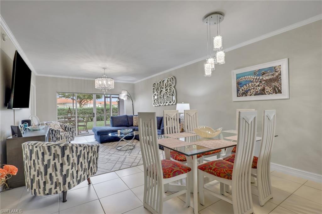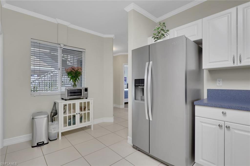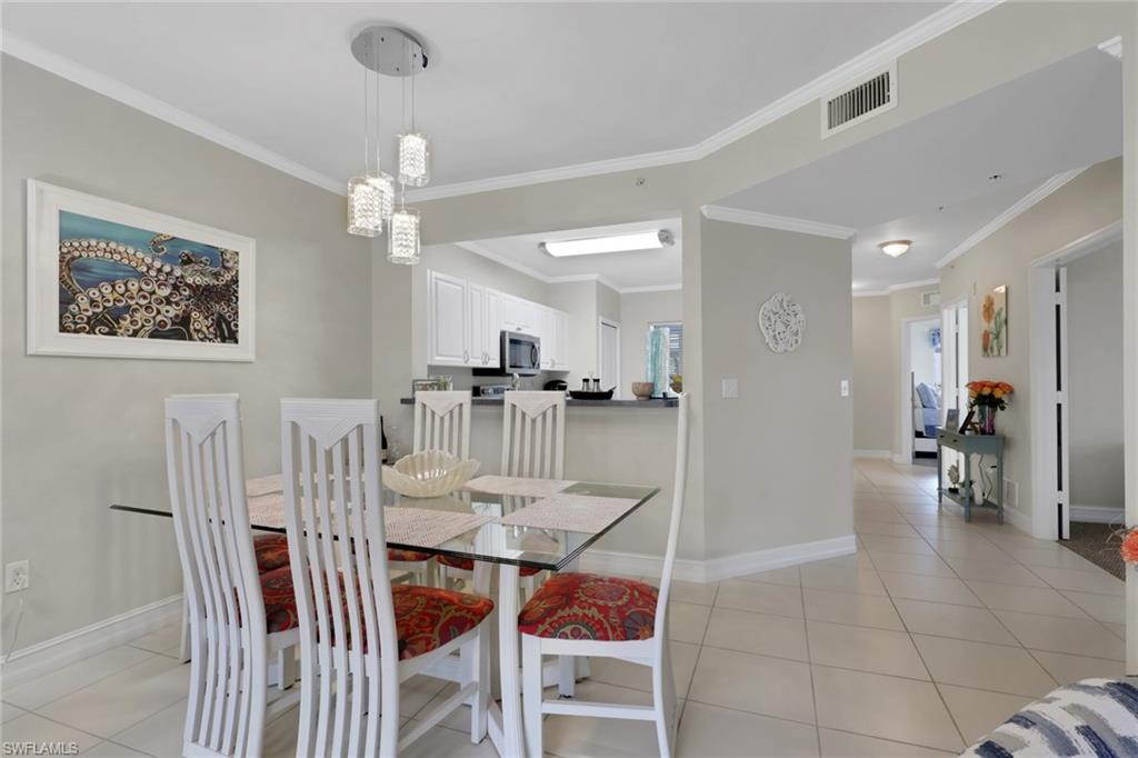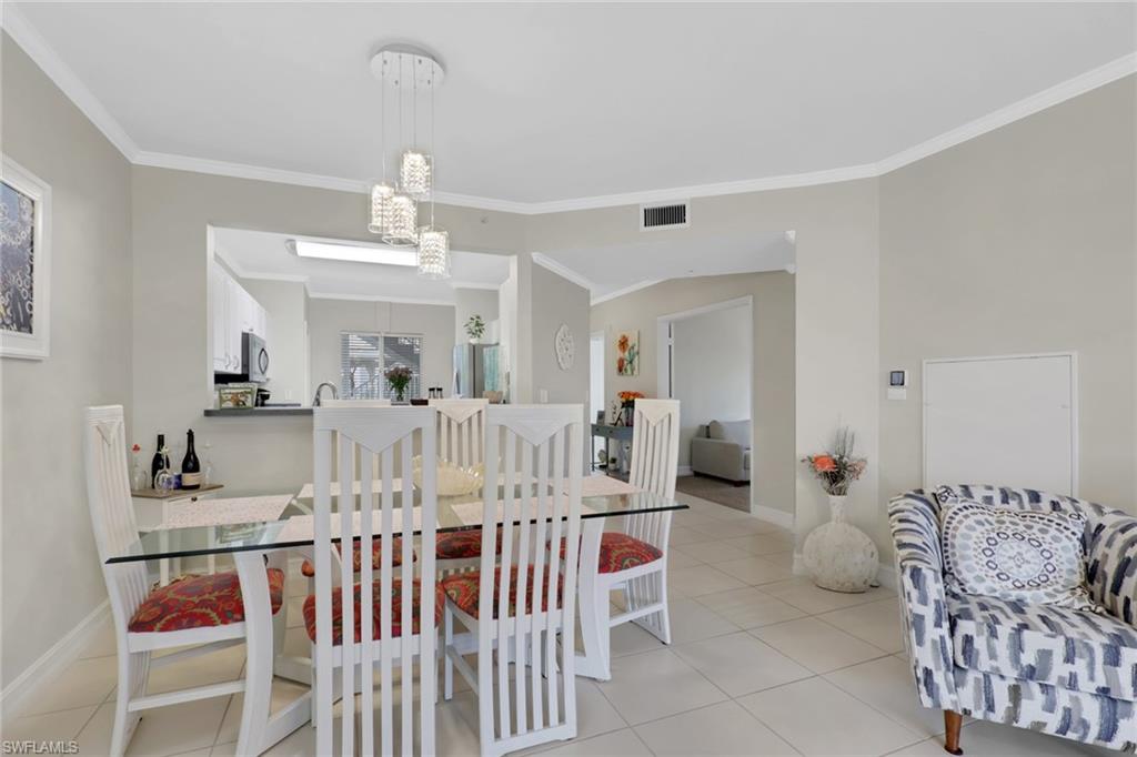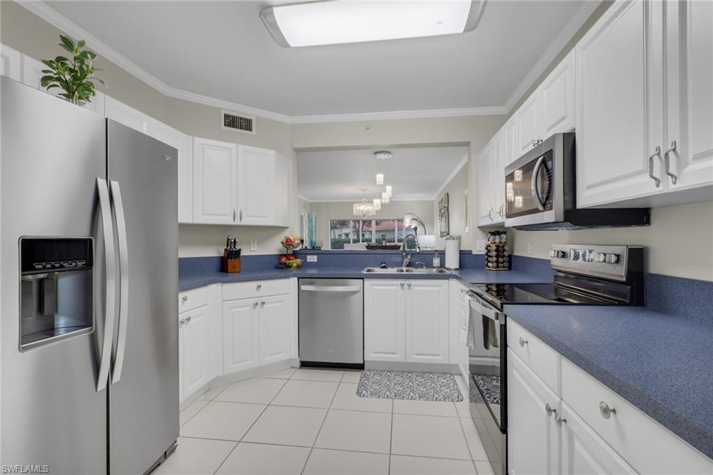 This impeccably maintained first-floor, 3-bedroom condo is being sold TURNKEY!! This open-concept condo has 1431 Sq. Ft. and feels spacious and airy from the moment you enter. There is a large kitchen with option for an eat-in breakfast area and a large pantry. The light-bright kitchen has ample counter/cupboard space with white cabinetry and stainless-steel appliances which are only 3 years old. The spacious primary bedroom has a double sink vanity, large walk-in-closet, and ensuite bath. There is a guest bedroom and guest bath as well as a third bedroom that could be utilized for an office or den. There is elegant crown molding throughout, and the entire condo has recently been painted. There is abundant light throughout this end-unit with the extra windows! Nestled in a quiet neighborhood, Blue Heron offers beautiful grounds, a sparkling community pool and clubhouse, as well as a plethora of social activities. The low condo fees in Blue Heron covers cable, water and so much more. The condo association painted the exterior of all buildings and replaced the roofs in 2023. Both annual and seasonal rentals are allowed, making this a great investment property. Blue Heron is conveniently located one mile from Berkshire Commons with dining, shopping, grocery stores and banking. It is a short drive to downtown Naples and the white sand beaches, fine dining, shopping and golf.