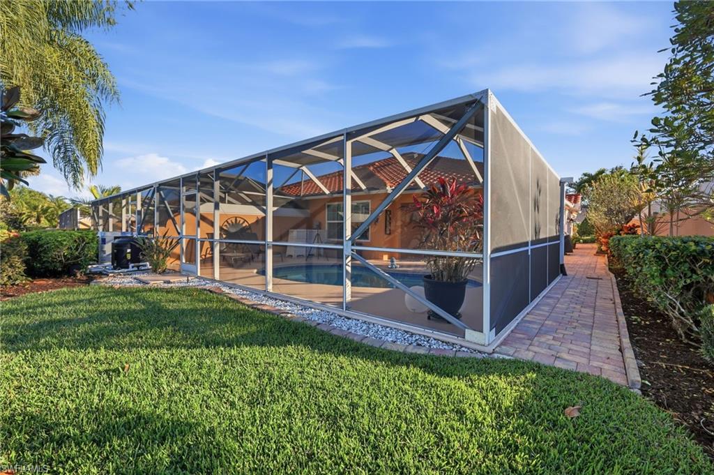 CUSTOM Capri NO WORK NEEDED ! "Built Solid " Poured concrete with upgraded Hurricane Impact Glass through-out the home, YOU CAN NOT BUILD A BETTER HOME , BETTER BUILT THEN ANY NEW 1540 SQ.FT. HOME !!! Beautiful Location ! NICE LOCATION WITH NO HOMES IN BACK OF YOU, HEATED POOL WITH UPGRADED NO-SEEUM SCREENS, ALL ALL THE BELLS AND WHISTLES ; UPDATED ROOF 2019, UPGRRADED AC SYSTEM AND HOTWATER HEATER , KITCHEN HAS UPGRADED STAINLESS STEEL APPLIANCES, CUSTOM BLACK GALAXY GRANITE , EXTENDED PORCELAIN TILE, HARDWOOD IN BOTH BEDROOMS, EXTENDED PAVERS THAT SURROUND THE HOME, ELECTRIC ROLL DOWNS, ON LANAI, BOTH DIVOSTA BUILT WALL UNITS IN GREAT ROOM AND GARAGE , UPGRADED EPOXY GARAGE FLOOR NEW MYQ GARAGE DOOR OPENER, ALSO GENERATOR READY INSTALLED HOOK-UP, PLANTATION SHUTTERS IN EVERY ROOM, UPGRADED FANS IN EVERY ROOM, HURRICANE FRONT ENTRY DOOR. Don't forget all of the features that you can not purchase with a new DIVOSTA HOME Smooth coat walls inside through-out, finished closets systems, 6 ft privacy wall BETWEEN YOU AND YOUR NEIGHBOR, insulated garage door, electric outlets galore in every room. Verona Walk offers LOW FEE'S INCLUDED ARE ; 24 hr. guarded gated entry, lighted tennis, bocce ball, basketball and pickle ball courts, resort-size community Lagoon pool, lap pool, tot lot, over 20 miles trails, 24/7 gym, post office, café/restaurant, ice cream Shoppe, hair salon, gas station, library, computer center, ballroom, card rooms, and a full-time activities director. Convenient location 15 minutes to downtown Naples 10 minutes to Marco Island beaches, shops and fine dining, regional hospital and Edison college nearby. The low HOA dues also include lawn care & irrigation, basic cable and internet is included .