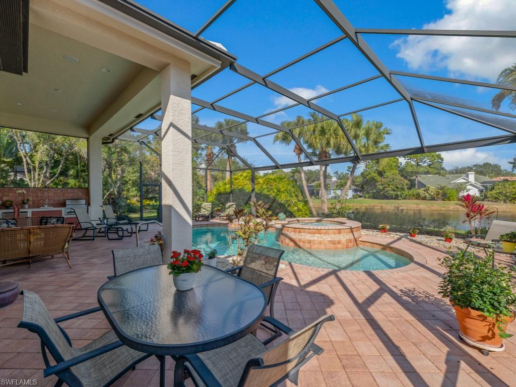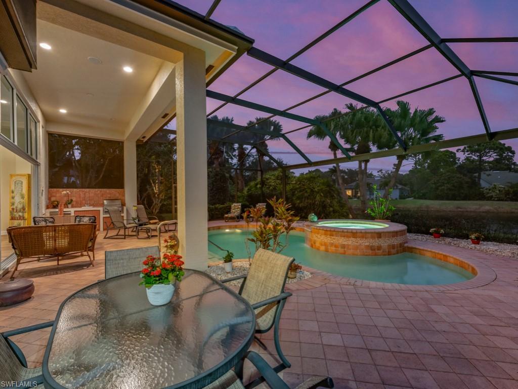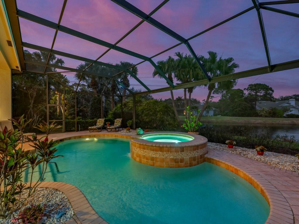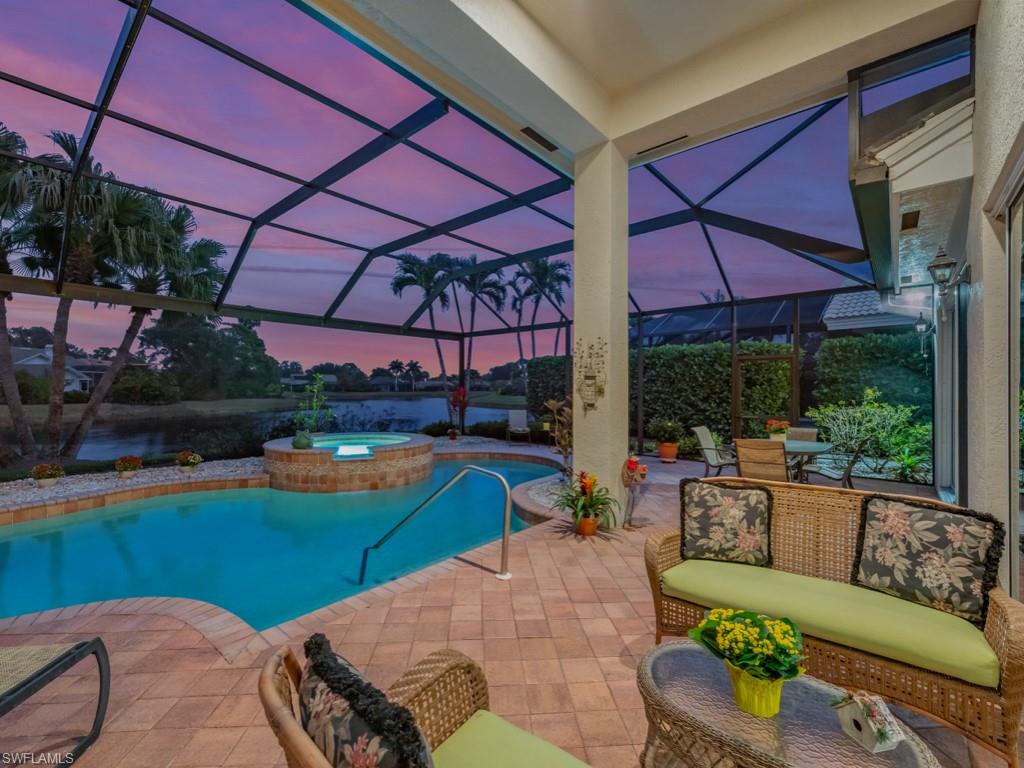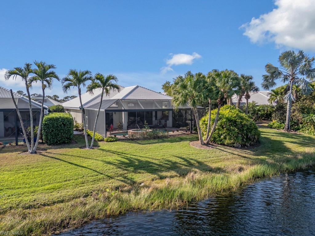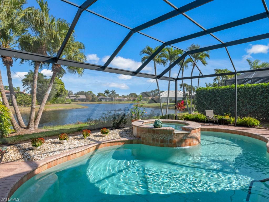 Rarely available in the highly sought-after Ascot neighborhood of Pelican Landing, this impeccably maintained lakefront residence offers over 3,000 square feet of living space with 3 bedrooms, 3 full baths, and a 2-car garage. The open, split floor plan is ideal for both everyday living and entertaining, featuring volume ceilings, recessed lighting, a bonus great room, and seamless indoor-outdoor living through grand sliding glass doors. The expansive screened lanai showcases a private pool and spa, covered seating area, and tranquil lake views, perfect for enjoying the Southwest Florida lifestyle. Inside, the home features new luxury vinyl flooring throughout the main living areas and is offered furnished. This home is not only move-in ready, but also ready for the next homeowner to put their own personal touches on it to make it their own. The spacious primary suite includes direct lanai access, dual vanities, a soaking tub, walk-in shower, and a walk-in closet. Major updates include a newer roof, pool cage, water heater, and AC. Pelican Landing offers an impressive range of amenities, including a top-notch tennis program, a private beach park accessible by water taxi, scenic kayaking and canoeing on Spring Creek, a lively community center, a state-of-the-art fitness center, sailing, bocce, pickleball courts. Golf enthusiasts can also take advantage of membership opportunities at The Nest Golf Club. Enjoy effortless access to Naples, Southwest Florida International Airport, Coconut Point, Miromar Outlets, and the pristine Gulf of Mexico beaches. This is a rare opportunity to own a waterfront home in one of Pelican Landing’s most desirable enclaves.