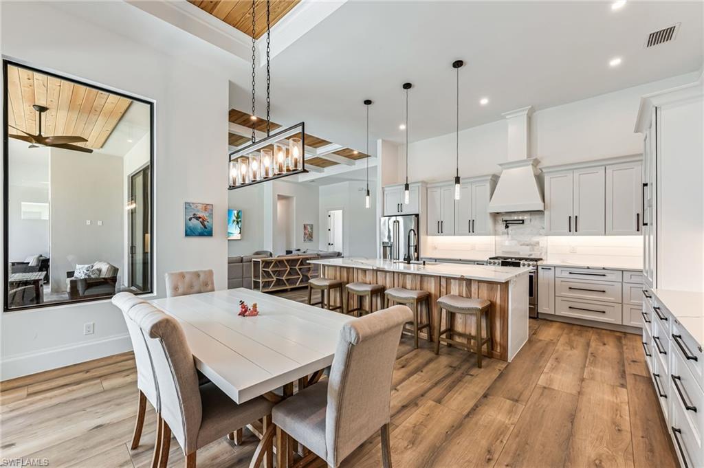 This one of a kind home sits in a prime location just one mile from the beach! New construction and fully custom built in 2025 includes 5 bedrooms, 4 bathrooms, expansive kitchen, 2 car garage, salt water pool with spa and sun shelf, and outdoor barbeque. As you walk through the 10 foot high front door you have the benefit of an open concept living space that perfectly blends a coastal and elegant feel. Master bedroom offers his and her closets and vanities, separate toilet room, expansive shower with dual shower heads with rain shower. The living room includes a custom built shiplap accent wall with television and electric fireplace. 10' sliders give sweeping views of the extensive lanai with multiple seating areas, outdoor shower and green space. The home is completely equipped with GE Cafe gas appliances drawing from the 500 gallon propane tank included on property. The custom finishes and detailed wood ceiling accents are the perfect example of artisanal craftsmanship. This home does not disappoint in any area and as a builder product, warranty is still in place. Fully or partially furnished it is ready for you to start your dream of island living today!