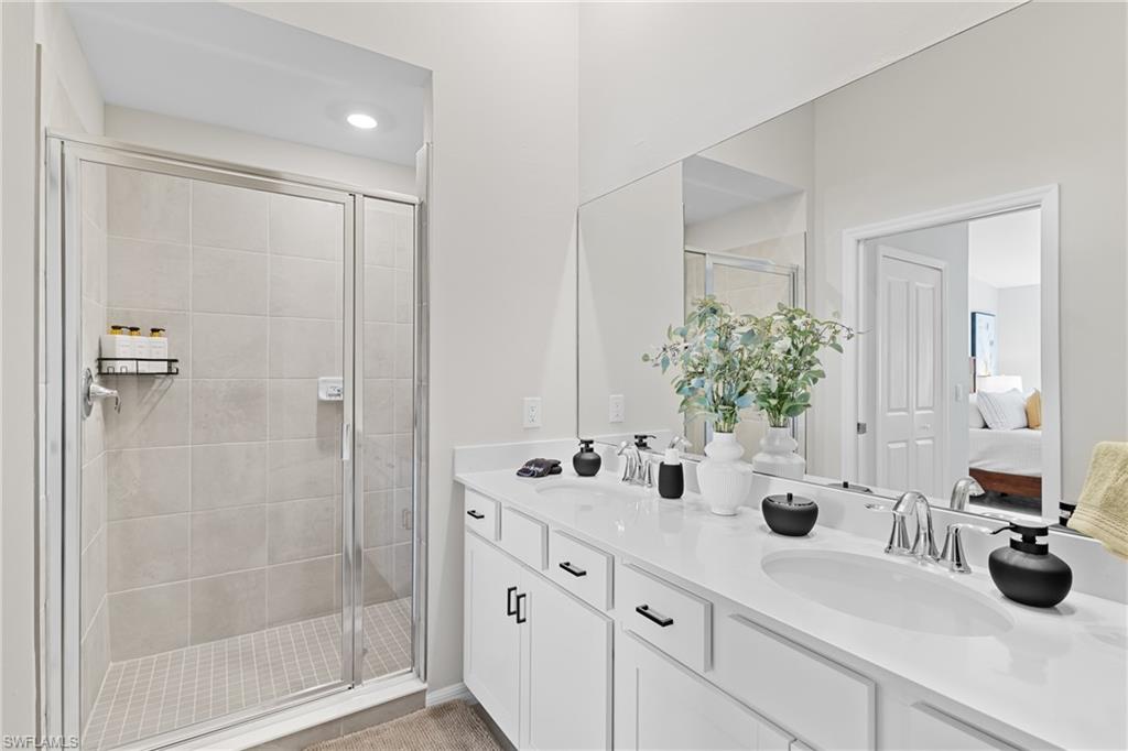 GOLF MEMBERSHIP INCLUDED.Experience the best of resort-style living with this fully furnished condo, complete with a golf package and all the comforts of home. Fully Furnished: Designer furnishings throughout, including a king bed in the master suite and a queen bed in the guest room. Spacious Accommodations: 2 bedrooms, 2 baths, plus a large den with a queen sleeper sofa, comfortably sleeping up to 6 guests. Outdoor Living: Enjoy two Florida room lanai patios, one at the front and one at the back, perfect for soaking in the breathtaking golf course and water sunset views. Ultimate Comfort: Plush bath towels, beach towels, and luxurious Pima cotton sheets are provided for your utmost comfort. Spectacular Views: The kitchen, dining, living room, and primary bedroom all offer direct views of the water and golf course. Recreational Amenities: Take advantage of the community's pickleball and tennis courts, fitness center, yoga studio, and of course Championship 18 Hole Gordon Lewis design golf course. Prime Location: Close proximity to a casino, beaches, downtown Naples, and Ave Maria, which features a WaterPark and town plaza.