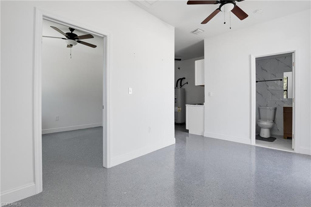 Brand new construction featuring a modern open concept layout with tile flooring throughout and abundant natural light. The kitchen offers a large center island, stainless steel appliances, contemporary cabinetry, and pendant lighting, flowing seamlessly into the main living area. Sliding glass doors open to a covered lanai, perfect for indoor outdoor living. The split floor plan provides privacy in the primary suite, while additional bedrooms offer flexibility for guests or a home office. Ceiling fans and neutral finishes throughout enhance comfort and efficiency. Situated on a spacious lot with a long driveway and no HOA, this home offers privacy, flexibility, and room to personalize. Conveniently located near shopping, dining, and major roadways while maintaining a quiet residential feel. Move in ready and easy to show.