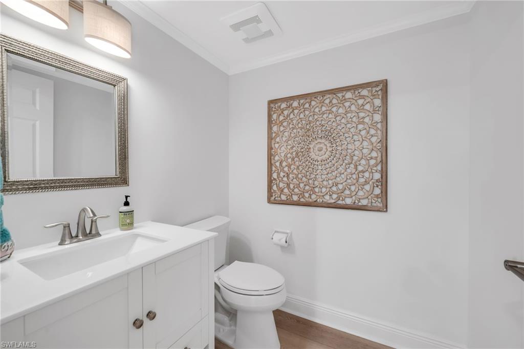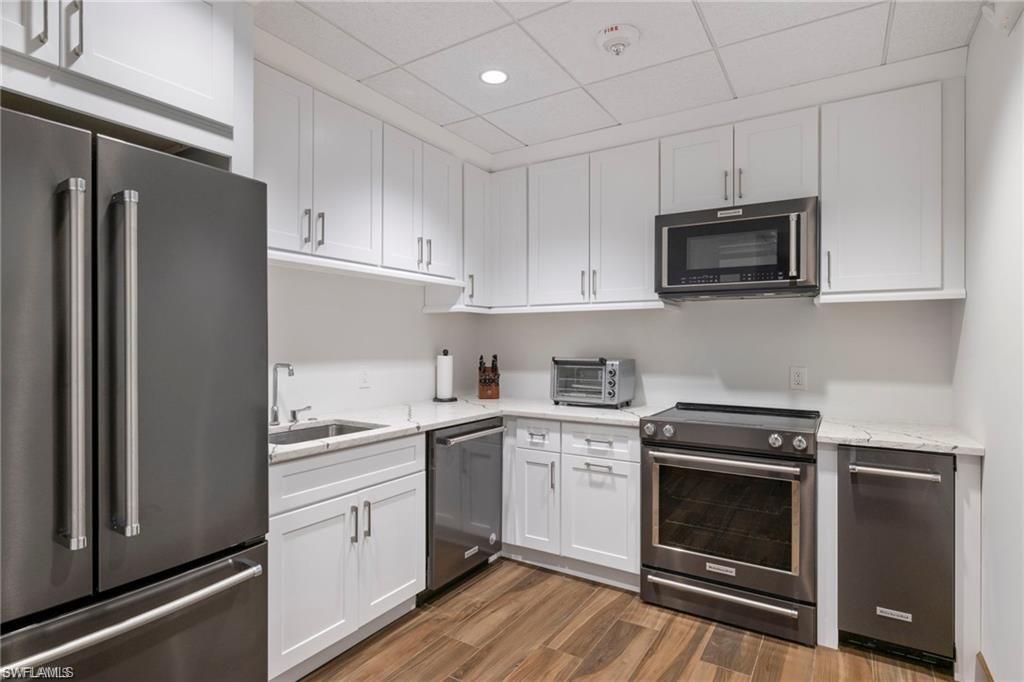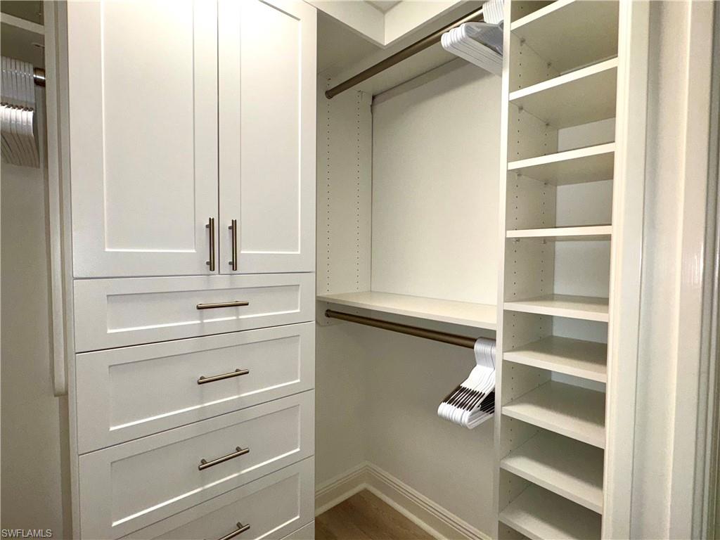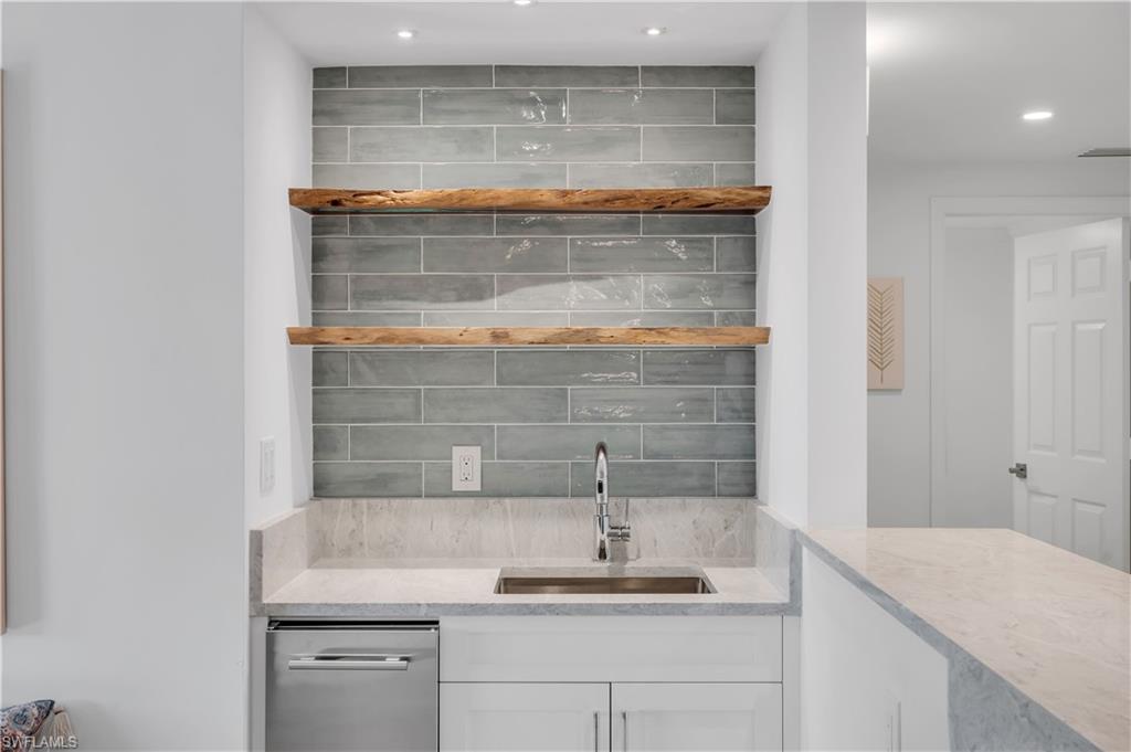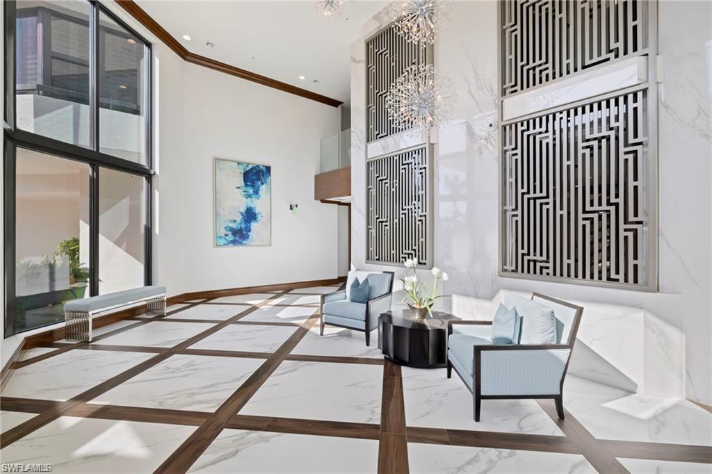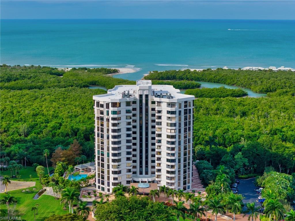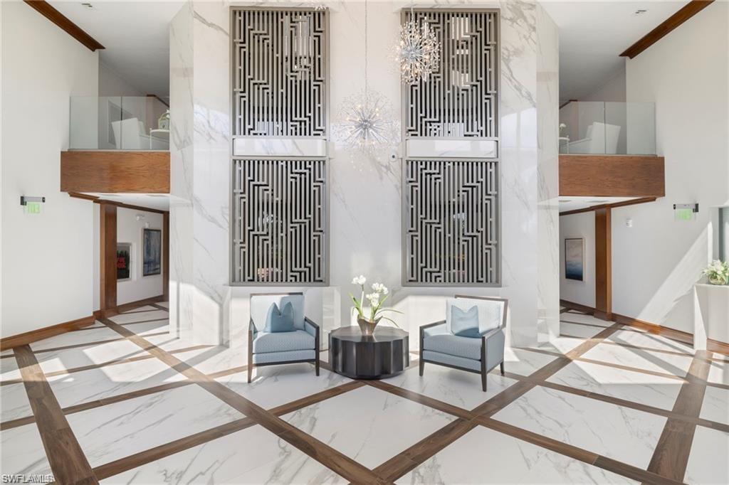Welcome to The Dorchester, an intimate, concierge style high rise of just 86 residences in the heart of sought after Pelican Bay. This beautifully renovated, southern-exposure condominium offers approximately 1,741 square feet of light-filled living space with two spacious en suite bedrooms and two and a half baths. Designed with a relaxed coastal vibe, the residence features wide-plank luxury vinyl flooring throughout, except for tiled bathroom floors, and an open living and dining layout that flows effortlessly to the generous lanai overlooking the pristine private community pool—ideal for indoor-outdoor living and entertaining. The kitchen connects seamlessly to the living areas and lanai, while thoughtful updates throughout include impact-resistant windows with heat and sun tint, all-new PEX plumbing, a tankless water heater, updated air vents, and modern lighting and ceiling fans. A striking custom waterfall wet bar with seating, wine refrigerator, ice maker, and shelving crafted from a fallen Pelican Bay tree adds a distinctive design element. Both the primary and guest baths have been fully redesigned down to the studs with new plumbing, electrical, custom cabinetry, tilework, and smart mirrors, while the primary suite also features an expanded walk-in closet, barn door, and serene retreat-like feel. Additional highlights include a secure garage space (#25) under the building with plenty of guest parking and a lanai enhanced with new ceramic flooring and custom electric Storm Smart hurricane, sun and bug screens. The Dorchester is a completely updated, code-compliant building offering exceptional amenities, including a stunning social room and kitchen with seamless flow to fire pits and the pool area, completely renovated lobby and reception area, two guest suites with kitchenettes, and a fully equipped fitness center overlooking the pool. Located just one third of a mile from the Gulf of Mexico and accessible via a quick boardwalk stroll through the mangroves or complimentary Pelican Bay tram which conveniently stops directly at the building's back door. Pelican Bay residents enjoy 2.5 miles of private beaches, two private beachfront restaurants, tennis, pickleball, a community center, miles of walking and biking paths, and 88 acres of parks and recreation areas. Anchored by world-class destinations such as the Ritz-Carlton, Naples Grande Beach Resort, Waterside Shops, and Artis—Naples, this residence at 6075 Pelican Bay Boulevard #303 offers refined coastal living in one of Naples’ most prestigious communities.