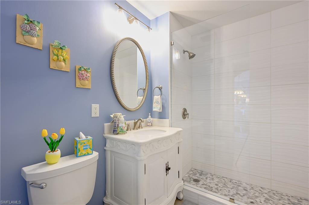 Step into this beautifully updated first floor condo in the highly sought after community of Bridgewater Bay in North Naples. Thoughtfully designed and lovingly maintained, this spacious residence features 2 bedrooms plus a versatile den with a Murphy bed, perfect for a home office, hobby room, or additional guest space. The fully updated kitchen showcases a farmhouse sink, granite countertops, ceiling height cabinetry with crown molding, and newer GE appliances. Premium tile flooring extends through the main living areas and the lanai, while the bedrooms offer soft, comfortable carpeting. Both bathrooms have been tastefully renovated, adding to the home’s move in ready appeal. Relax on the screened lanai overlooking a peaceful lake and fountain—an ideal spot for morning coffee or evening unwinding. Crown molding and plantation shutters throughout the home elevate the overall finish. An attached garage — a feature not commonly available in similar homes — provides everyday convenience and added value. Bridgewater Bay offers one of the most impressive amenity packages in North Naples. Residents enjoy a huge resort style pool and spa, a separate screen enclosed lap pool, and a recently renovated clubhouse with an active social calendar that makes it easy to connect with neighbors. Additional amenities include a fitness room, sauna, tennis, pickleball, and bocce — and the community is known for its active group of pickleball players, making it easy for newcomers to jump in and get involved. Perfectly positioned near Naples’ best restaurants, world class shopping, and pristine beaches, this home delivers the ideal blend of comfort, convenience, and community. Bridgewater Bay is known for its friendly, close-knit atmosphere — a place where it’s truly easy to make friends and feel right at home!
