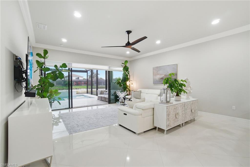 This beautifully upgraded 3-bedroom plus den lakefront home in Stonecreek offers the perfect blend of comfort, style, and Florida outdoor living, highlighted by a brand-new custom saltwater pool with desirable southern exposure. Thoughtfully designed for both everyday living and entertaining, the home welcomes you with tranquil tropical landscaping at the entry and continues with refined interior details such as picture-frame molding in the dining room, custom window treatments throughout, and new ceiling fans that enhance both form and function. The kitchen is both functional and inviting, featuring timeless granite countertops, quality Frigidaire and GE appliances, and a brand-new dishwasher—ideal for daily living and hosting alike. Enhanced health and wellness were also thoughtfully considered with the addition of a new water softener, reverse osmosis system, and whole-home water purification. Outdoors, the private backyard retreat showcases a newly built custom saltwater pool by Superior Pools with elegant white travertine decking, smartphone-controlled ScreenLogic technology, and an outdoor shower, all set against peaceful lake views. The outdoor living area has already been plumbed and electrically prepared for a future summer kitchen, allowing for effortless expansion of the space. Additional highlights include an intercom system inside and out, a high-quality Vector audio system for immersive sound, and a finished garage with epoxy floors, custom built-ins, overhead storage, and track wall organization. Ideally located in the sought-after Stonecreek community in North Naples, residents enjoy an exceptional array of resort-style amenities and convenient access to A-rated schools, including Aubrey Rogers High School, along with I-75, golf courses, upscale dining and shopping, and Naples’ pristine beaches.