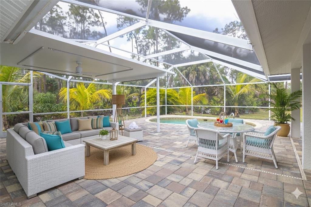 Prime North Naples Acreage Opportunity in Sought-After Logan Woods: Discover this exceptional 2.27-acre property in the peaceful, highly desirable Logan Woods neighborhood of North Naples—a rare gem offering privacy, versatility, and endless potential in one of Southwest Florida’s most coveted locations. The primary home boasts around 2,410 square feet of comfortable living space, featuring 4 bedrooms, 3 bathrooms, a spacious family room, plus formal living and dining areas. The open, flowing layout is perfect for everyday living and effortless entertaining, with seamless access to the outdoors and a refreshing sparkling pool visible from multiple rooms. A sturdy metal roof ensures durability and low maintenance. Outside awaits your personal Florida paradise: a screened pool area enveloped in mature, lush landscaping, ideal for unwinding, hosting gatherings, or simply soaking in the serene, tropical vibe that defines Logan Woods living. Complementing the main residence is a versatile 560-square-foot guest house/studio/efficiency (currently configured as a 1-bedroom unit with an open kitchen-living area, full bath, and private lanai). This flexible space generates strong income potential—up to $1,600/month—making it perfect for short-term rentals, in-law accommodations, a home office, or extended family. With no HOA restrictions and abundant land, this acreage property is primed for your vision: add horses with room for pasture and stables, plant a thriving orchard, install a pickleball or tennis court, or construct an additional outbuilding to support a home-based business or workshop. Embrace the true Florida lifestyle—outdoor living, space to roam, and the freedom to customize—while being just a short drive from pristine Gulf of Mexico beaches, upscale shopping, fine dining, top-rated schools, and all the amenities that make Naples legendary. Whether you’re envisioning a multi-generational retreat, a smart investment with rental income, an equestrian-friendly estate, or a blend of all three, this North Naples acreage home delivers unmatched flexibility and location. Don’t miss this chance to own a piece of paradise in Logan Woods!
