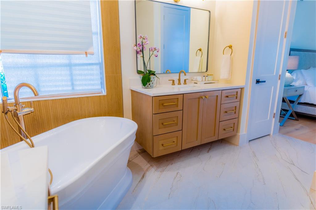 AMAZING and UNIQUE OPPORTUNITY for 5 BEDROOM, 4 1/12 BATH HOME with 3 CAR SIDE LOADING GARAGE CROWNED WITH A BRAND NEW POOL, SPA and HUGE PATIO.............. SOARING GREAT ROOM CEILING and LOFT SEATING AREA (14 x 11). PRIMARY BEDROOM SUITE IS ON THE GROUND LEVEL with ANOTHER BEDROOM ON FIRST FLOOR. THREE NEW ENSUITE BEDROOMS UPSTAIRS. NEW FLOORING, NEW DOORS, NEW PAINT IN NEW RENOVATION.............. GARAGE FLOOR with NEW EXPOXY COATING................TASTEFULLY REIMAGINED with DESIGNER TOUCHES.............."X500" FLOOD ZONE..............WALK or BICYCLE TO VANDERBILT BEACH an DELNOR-WIGGINS BEACH STATE PARK..............Location overlooks canals on the other side of Vanderbilt Drive............. Nearby attractions and conveniences include MERCATO (Whole foods, movie theater, restaurants, bars and nightlife, shopping, boutiques), PAVILION (restaurants, Naples Cyclery bike shop, LA Fitness, shopping, walk-in clinic and more), PELICAN BAY MARKETPLACE (Publix grocery store, Ace Hardware, CVS pharmacy, restaurants, shopping and more), WATERSIDE SHOPS (Apple Store, high end shopping, Williams Sonoma, boutiques and more).............. Ritz Carlton Hotel, LaPlaya Hotel, public library, pharmacies, Trader Joe's, many restaurants, hotels, marina and anything under the sun that you might want or need is at your fingertips..............THIS HOME IS THE COMPLETE PACKAGE..............IF YOU CAN, YOU ABSOLUTELY SHOULD!