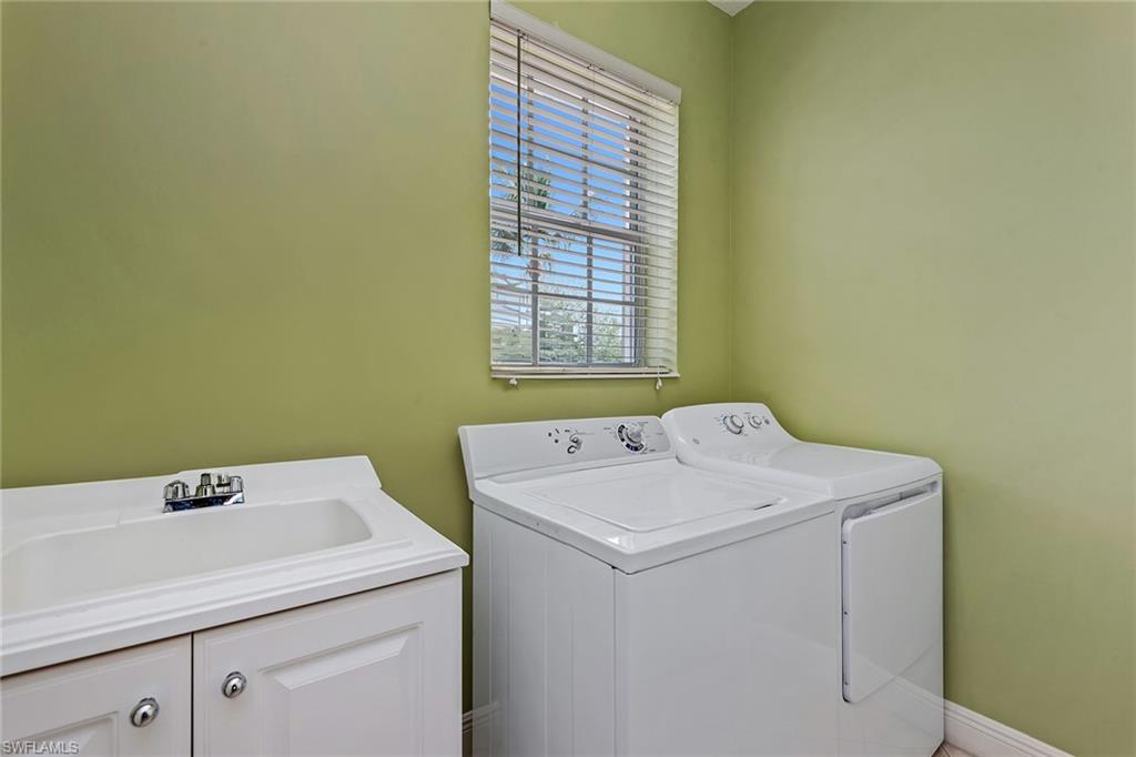 This beautifully maintained Carona floor plan coach home in Laguna at Fiddler’s Creek offers a peaceful Southwest Florida retreat with long, tranquil lake views, abundant natural light and desirable southwest exposure. Designed for elevated resort-style living, the residence features a spacious covered lanai overlooking serene water vistas, creating an inviting backdrop for everyday relaxation or entertaining. With three bedrooms, three baths and a two-car garage, the thoughtfully designed layout includes diagonal tile flooring throughout the main living areas, high ceilings, and a split-bedroom floor plan that balances privacy and comfort. The inviting living room is enhanced by modern ceiling fans and glass sliders that open seamlessly to the lanai, filling the space with natural light and calming lake views. The kitchen blends style and functionality with shaker-style cabinetry, granite countertops, a tumbled marble tile backsplash, recessed lighting and a breakfast bar counter. Stainless steel GE appliances, including a gas range, newer microwave, refrigerator/freezer and dishwasher, complement the space, while a walk-in pantry and cozy dining area add everyday convenience. The owner’s suite is a tranquil retreat with direct lanai access, soothing water views and walk-in closets with wood-slatted shelving. The en-suite bath features dual vanities with a full-width mirror and makeup counter, a glass-enclosed walk-in shower and a separate soaking tub. Two guest bedrooms provide comfortable accommodations, each with walk-in closets and en-suite baths with walk-in showers, including one accessed through elegant double doors with arched windows. Additional highlights include impact doors and windows replaced in 2021, a new building roof in 2021, and a spacious laundry room with utility sink, storage closet, and GE washer and dryer. The expansive screened lanai with covered outdoor living space offers the ideal setting to unwind while enjoying sweeping lake views. Residents of Fiddler’s Creek enjoy an award-winning, gated community with newly completed 2025 enhancements, including an updated resort-style pool with waterfalls and slides, upgraded Gator Grille restaurant and 10 new pickleball courts. The renovated Clubhouse features a world-class fitness center, six Har-Tru tennis courts, and a hot tub, sauna and steam room. Scenic recreational and biking paths and outstanding dining options enrich daily living. Optional memberships, with no golf waiting list, offer access to the renovated championship course, new golf clubhouse, marina and private beach club.