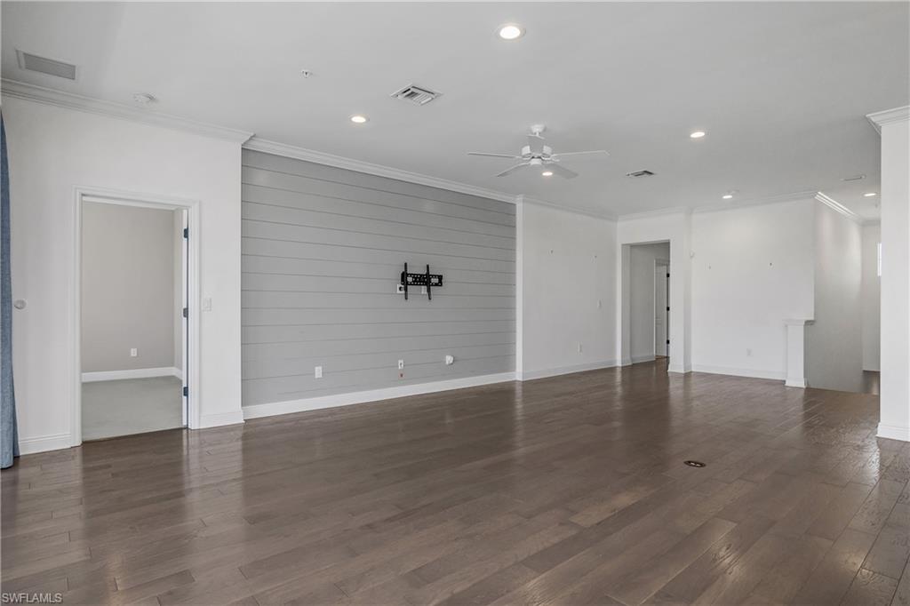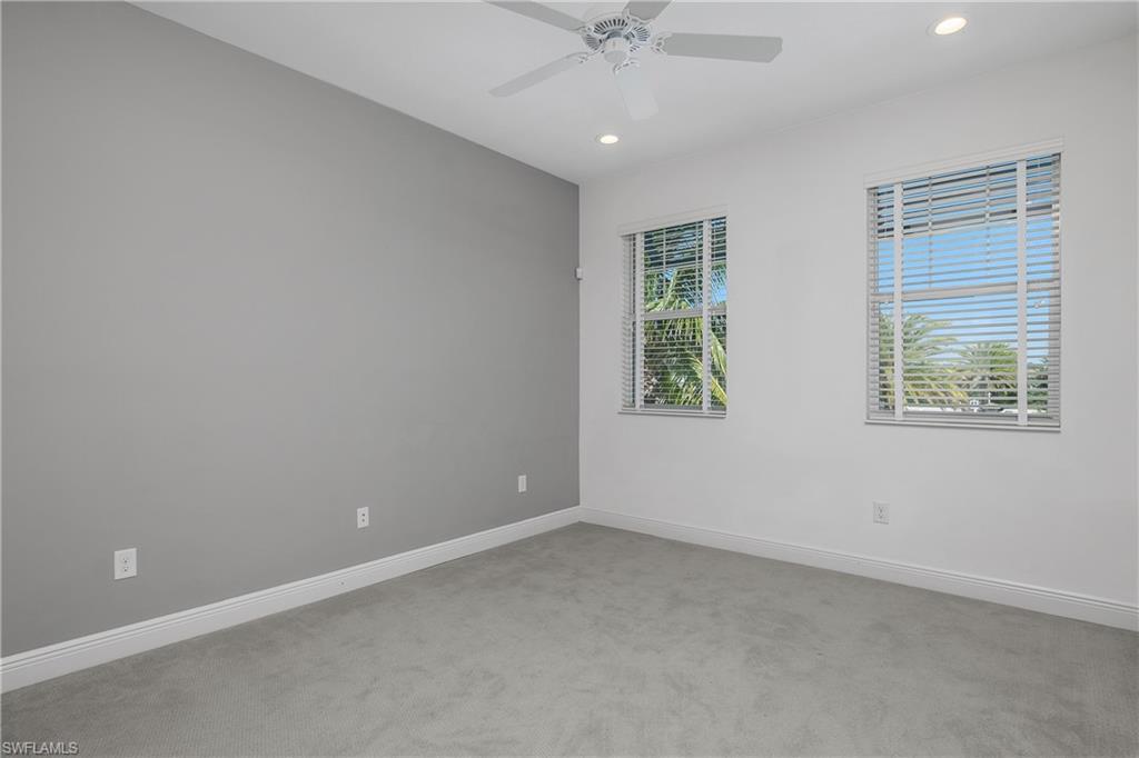 Whitehaven floor plan available! Built in 2017, this 3 Bedroom, 2 Bath, 2nd Floor unit The Whitehaven model features an open concept floor plan that allows the Kitchen, dining and living area to flow seamlessly that then leads to oversized screened lanai overlooking the Richmond Park Lake. Sliding glass doors and windows are hurricane impact glass with plantation shutters on all the windows and Hunter Douglas retractable blinds covering the sliding glass doors that open from the living room and dining area to the lanai. Additional crown molding throughout the home, high end fans and light fixtures, additional cabinet moldings, custom tile bathrooms and kitchen, quartz countertops, walk in closet in the master bedroom attached to a large bathroom with dual sinks, large shower and private toilet area. Richmond Park has low HOA fees and is a NO CDD gated community with coastal-themed carriage home buildings with only 104 homes. The community offers its own resort-style swimming pool/hot tub, clubhouse with full kitchen and large dining area for events plus outside grill located in North Naples close to hospitals, restaurants, grocery stores, just minutes from Founders Square shopping, gas stations & more.