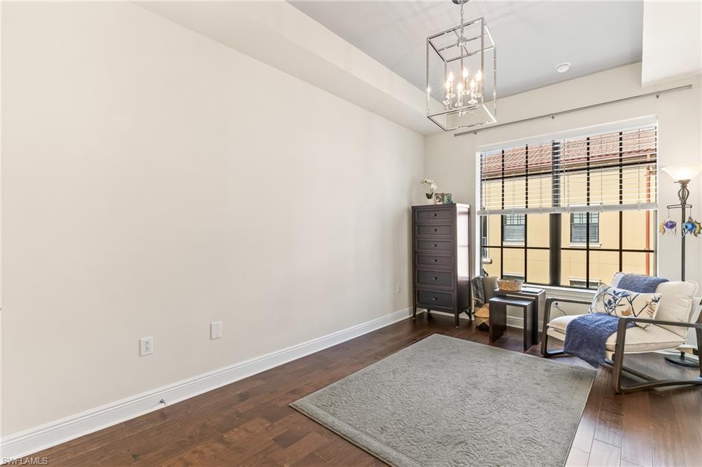 Welcome to this beautifully maintained 2-bedroom plus den, 2-bath, end unit, penthouse in the highly sought-after Residences at Coconut Point. This light and inviting condo features updated wood flooring throughout the main living areas, 10 foot ceilings and a stylish, completely remodeled kitchen with a breakfast bar perfect for casual dining and entertaining. The open living space flows effortlessly to a Juliet balcony and a grand lanai, ideal for relaxing and enjoying the Florida lifestyle. The spacious primary suite offers comfort and privacy and includes an updated bathroom with Quartz countertops, a large soaking tub and two walk in closets with custom closet systems, while the additional bedroom and versatile den provide flexible space for guests, a home office, or hobbies. Homeowners in The Residences at Coconut Point enjoy a secure, well-maintained community with amenities that include a resort-style pool, fitness center, and social spaces. Perfectly located within SWFL's top rated Coconut Point Mall, you’ll have premier shopping, dining, and entertainment right outside your door and residents get an exclusive 10%-20% discount at many stores. This fantastic unit also includes two reserved garage parking spaces and an air conditioned storage room for your convenience. HOA fees include high-speed internet, premium cable, water, sewer, and trash making this condo one of the best values in SWFL. The community is also conveniently situated near pristine Gulf beaches, golf courses, Hertz Arena, Florida Gulf Coast University and Southwest Florida International Airport, making it ideal for both full-time residents and seasonal owners.