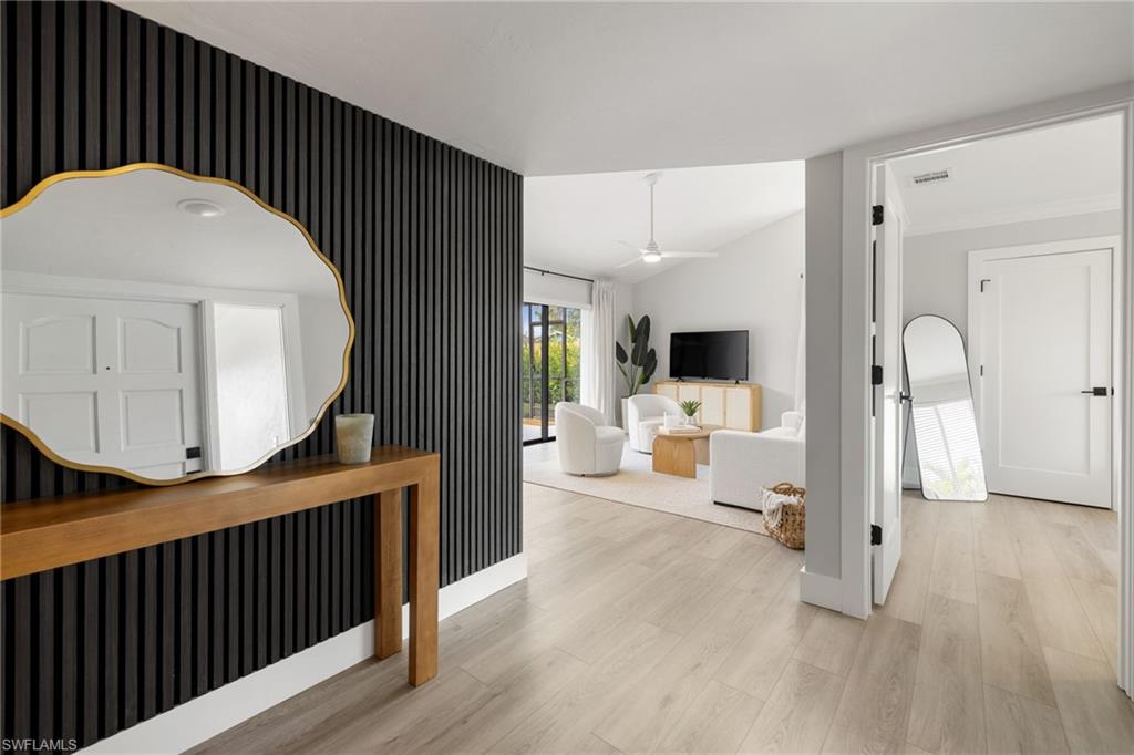 Welcome to 1196 Westlake Blvd, an exquisite coastal retreat nestled in the heart of Naples, FL! This stunning gut renovated 4 bedroom / 2 bath home perfectly blends modern elegance with the relaxed charm of Florida living. Located just moments from world-class beaches, vibrant dining, and upscale shopping, this property delivers the ultimate lifestyle experience. Never lived in since the renovations mid-2025. Step inside and prepare to be captivated by the open-concept design, bathed in natural light. The spacious living area features soaring vaulted ceilings and seamless indoor-outdoor flow onto a huge covered lanai, making it perfect for entertaining or unwinding with loved ones. The gourmet kitchen is a chef’s dream, boasting high-end stainless steel appliances, pristine quartz countertops/backsplash and beautiful gold hardware on the brand new white cabinetry. The primary suite is a private oasis, complete with a spa-like ensuite bathroom and generous walk-in closet. Wake up to serene views of lush greenery and treat yourself to morning coffee on your private lanai. The 3 additional bedrooms are equally inviting allowing for a guest room/s, kids nursery, kids room with bunk beds or even a playroom. Outside, the meticulously landscaped backyard feels like your own tropical paradise. Plenty of room for a small pool while preserving some of the green space as well. Pool quote available upon request. The 2 car garage already equipped with epoxy and washer/dryer. Beyond the property, you'll find yourself in one of Naples' most sought-after neighborhoods. Prized for its proximity to the Gulf, top-rated schools, Mercato, Waterside shops, Venetian Village and more, this location is ideal for anyone seeking both convenience and sophistication. This property would make sense for a full-time occupant or due to the no HOA, it allows the potential for a savvy investor to rent long term or establish it as one of the hottest Airbnb's in the area. This is truly ready to move-in immediately post-closing. From there, the choice is yours!