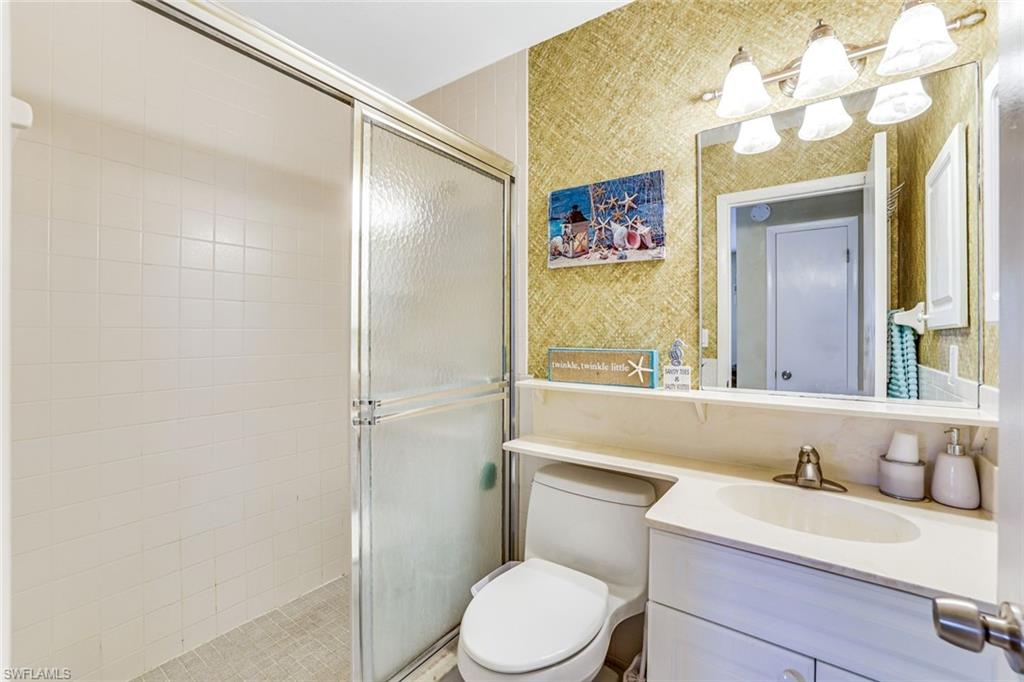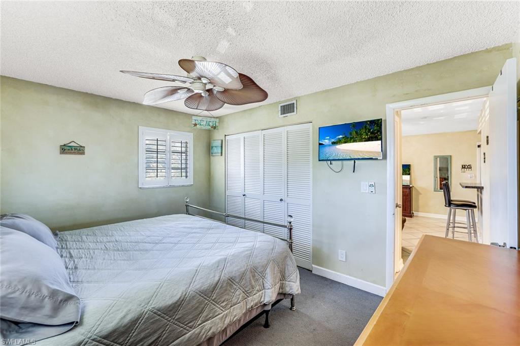 Beautiful second floor unit with income producing potential! 30-day minimum rentals or annual rentals are permitted. One bedroom, one bath in a central Marco Island location. Marco Villas is walking distance to shopping, entertainment and Veterans Park! Exceptional value, perfect for investors looking for a spot on Marco Island. The main living space offers tile flooring and plantation shutter windows. The updated kitchen is equipped with modern appliances. The bathroom offers a walk-in shower and updated cabinets. Replaced in 2015, the air conditioning unit offers comfort year-round. The unit also features keyed storage and a common area laundry facility. 1 pet is permitted by the HOA, as well as 1 assigned parking space.