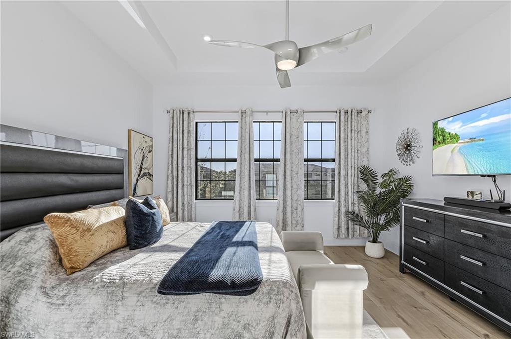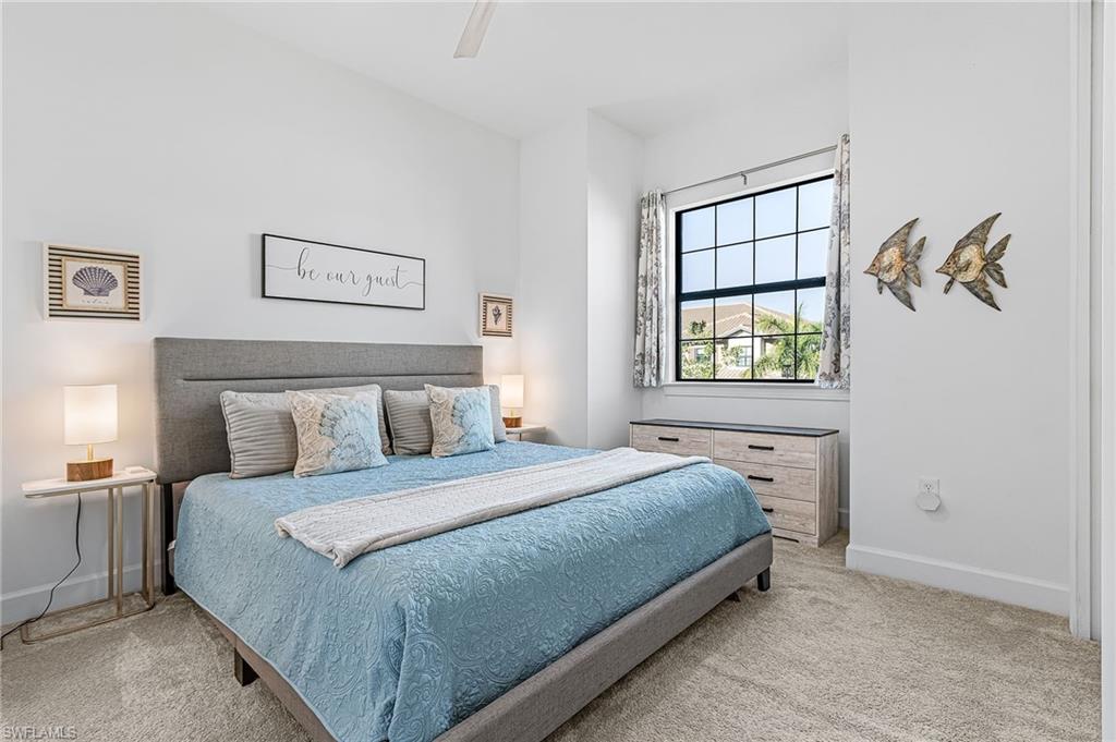 Luxury Coach Home with Serene Water Views in Esplanade by the Islands – Naples, FL Welcome to elevated resort-style living at Esplanade by the Islands in beautiful Naples, Florida. This stunning second-floor Bellissimo floorplan coach home offers 2,343 sq. ft. of refined interior living space plus large private outdoor lanai space, showcasing tranquil southwest-facing water views and beautiful Naple’s sunsets! The Bellissimo features 3 spacious bedrooms and 2.5 bathrooms. This residence is being sold TURNKEY making it truly move-in ready. The home has nice upgrades and a Kinetco water system which provides quality water to your home. The open-concept layout seamlessly connects the expansive great room to the gourmet kitchen, which is beautifully appointed with quartz countertops, stainless steel appliances, and modern designer accents. The luxurious owner’s suite serves as a private retreat with a dual-sink vanity, oversized walk-in shower and a generous walk-in closet. Two additional guest suites offer privacy and comfort, complemented by a well-equipped laundry room. Additional highlights include hurricane-impact windows and doors, a 1-car attached garage, and the home has been lightly lived in and is smoke and animal free. Ideally located just off US-41, Esplanade by the Islands places you minutes from Marco Island, and Naples Gulf beaches. Experience the Heart of Naples, 5th Avenue South, the Crown Jewel of Naples! Esplanade residents enjoy an unmatched resort lifestyle with access to the Bahama Bar & Grille, which offers full-service both in the restaurant and at the resort pool. Wellness Center & Day Spa, resort-style pool with a hot tub, state-of-the-art fitness center, 5 clay tennis and 8 pickleball courts, dog park, scenic walking trails, and a vibrant calendar of social and wellness events. A future Culinary Arts Center will further enhance the community’s focus on food, wine, and social experiences. All within walking distance to your condo and an added bonus is the neighborhood pool which is within steps from your condo that has grills and a firepit. With low HOA fees covering landscaping, irrigation, pest control, water, and full amenity access, this home offers exceptional luxury and value. A Publix and Urgent Care is conveniently located next door.