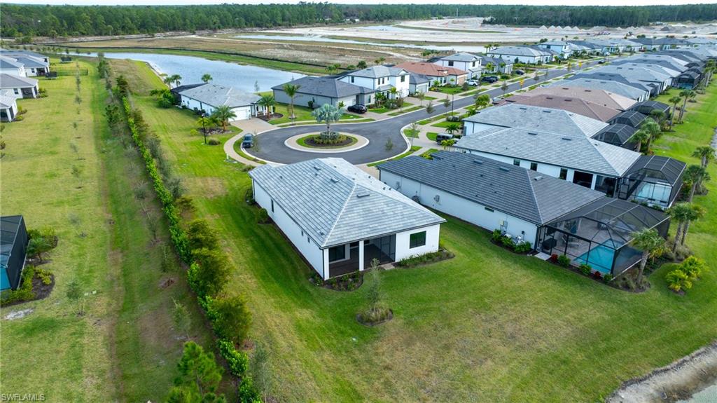 Available now/Move in ready!!!! Situated at the end of a quiet cul-de-sac street on an oversized lakefront lot, this beautifully upgraded "Prestige" floorplan home offers a perfect blend of style, comfort, and resort-inspired living with its 3 bedroom, 2.5 bath layout with extended garage! Features include white cabinetry with quartz countertops, glass mosaic backsplash, built-in KitchenAid appliances including a GAS cooktop & wall oven, tray ceiling in the gathering room, and an oversized shower in the owner’s suite. Enjoy seamless indoor-outdoor living with an extended lanai, outdoor kitchen pre-plumb, and electrical pre-wire for a future pool/spa. Additional upgrades include: hurricane impact windows & doors; cabinets and countertops in the laundry room with horizontal laundry shoot; 12x24 tile flooring throughout (no carpet anywhere); 8’ interior doors; epoxy-finished garage floor; tankless water heater; and so much more! Located in Terreno by DiVosta, a gated community designed for a true resort lifestyle, residents enjoy open floor plans, gourmet kitchens, and expansive outdoor living spaces. Perfect for those seeking modern luxury homes in Naples, FL. Community amenities are second to none and include a 15,000-sq-ft grand clubhouse with a large event space and catering kitchen, state-of-the-art fitness center, exercise studio, 8 pickleball courts, 2 tennis courts, dog park, playground, firepit lounge, resort-style pool with lap lanes, heated spa, and a full-service restaurant, bar & grill with food-truck drive-up. Plus, an 18-hole public golf course is located right next door. If you’re looking for luxury homes for sale in Naples with private amenities and an unmatched lifestyle, Terreno should be at the top of your list. SAVE THOUSANDS IN CLOSING COSTS - SELLER PAYS DOC STAMPS AND NO NEW CONSTRUCTION BUILDER FEES AT CLOSING!