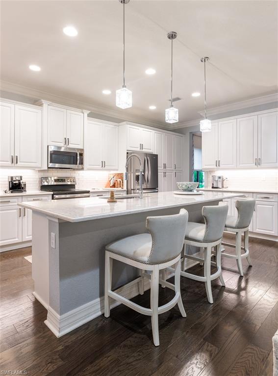 Located in the highly desirable and beautifully maintained community of Marbella Isles, this modern residence is filled with abundant natural light and designed for both comfort and effortless entertaining. The thoughtful floor plan offers excellent privacy and flexibility, featuring a spacious main living area downstairs along with an upstairs loft retreat—perfect for a second living space, home office, or media area. At the heart of the home is a beautiful kitchen featuring a large island, breakfast bar, and a sunny breakfast room ideal for casual dining and morning coffee. For more formal occasions, the home also offers a beautiful formal dining room, creating the perfect setting for hosting family and friends in style. Step through the back door into your own resort-style oasis. The outdoor living area is the true highlight, complete with a private pool and spa, a newly installed Aqualink pool system, a fully fenced backyard, and an inviting summer kitchen that makes outdoor dining and gatherings a breeze. Inside, the home is enhanced with numerous high-end upgrades including Hunter Douglas custom blinds throughout, a custom wine nook, and newly installed custom closets in the primary suite. The laundry room has also been upgraded with custom built-in cabinetry for added storage and organization. Additional improvements include a brand new Waterbird whole-home filtration system, hanging garage storage racks, and a recently installed LiftMaster garage door system. Marbella Isles takes luxury living to the next level with exceptional resort-style amenities just moments from your front door. Residents enjoy a stunning clubhouse, resort pool with cabanas, water park, fitness center, game room, basketball court, three tennis courts, and four pickleball courts. Perfectly situated close to Naples’ renowned shopping and dining, with easy access to the area’s spectacular Gulf beaches, this property offers an ideal blend of lifestyle, functionality, and location. Don’t miss the opportunity to own this special home in one of Naples’ most sought-after communities.