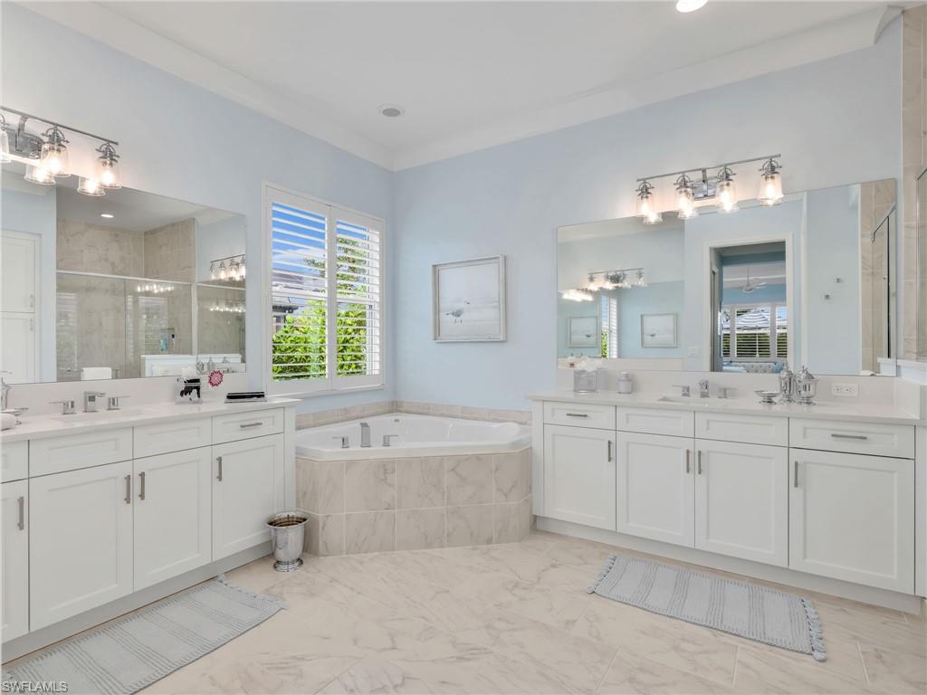 Welcome to the exquisite Marina Model, impeccably designed home featuring 3 bedrooms plus a private office, showcasing refined coastal Florida decor and designer finishes throughout. The office features a custom built-in desk and entertainment area creating a sophisticated functional workspace. This 3.5 bath residence is richly appointed with extensive millwork, designer lighting, custom window treatments, and plantation shutters, while California closets throughout provide elegant organization. The great room is anchored by a stunning electric fireplace, seamlessly blending warmth and style. The gourmet kitchen is a show piece featuring custom built in pantry with roll out drawers, beverage center and thoughtful upgrades for both entertaining and everyday living. The indoor living flows effortlessly to the outdoors through hurricane-impact windows and doors leading to a full-view screened lanai overlooking a serene water view. The heated pool, complete with built in seating and tranquil waterfalls creates a true resort-style retreat, complimented by a beautiful outdoor kitchen. The temperature-controlled garage is finished with an epoxy floor and custom storage cabinetry, offering both luxury and practicality. surrounded with lush landscaping and maintained to perfection. This home truly shows like a model and delivers the ultimate Florida lifestyle. The clubhouse is an astonishing 43,000 sq ft filled with lap, swimming and resistance pool. Treat yourself to a spa day and never leave the neighborhood. The Gather Restaurant offers some of the best food to ever meet your palate preference. Gym/workout area has some of the best high-end equipment to reach your personal goals. Multiple club rooms and a show room for entertainment of all kinds. this clubhouse is nothing short of spectacular.