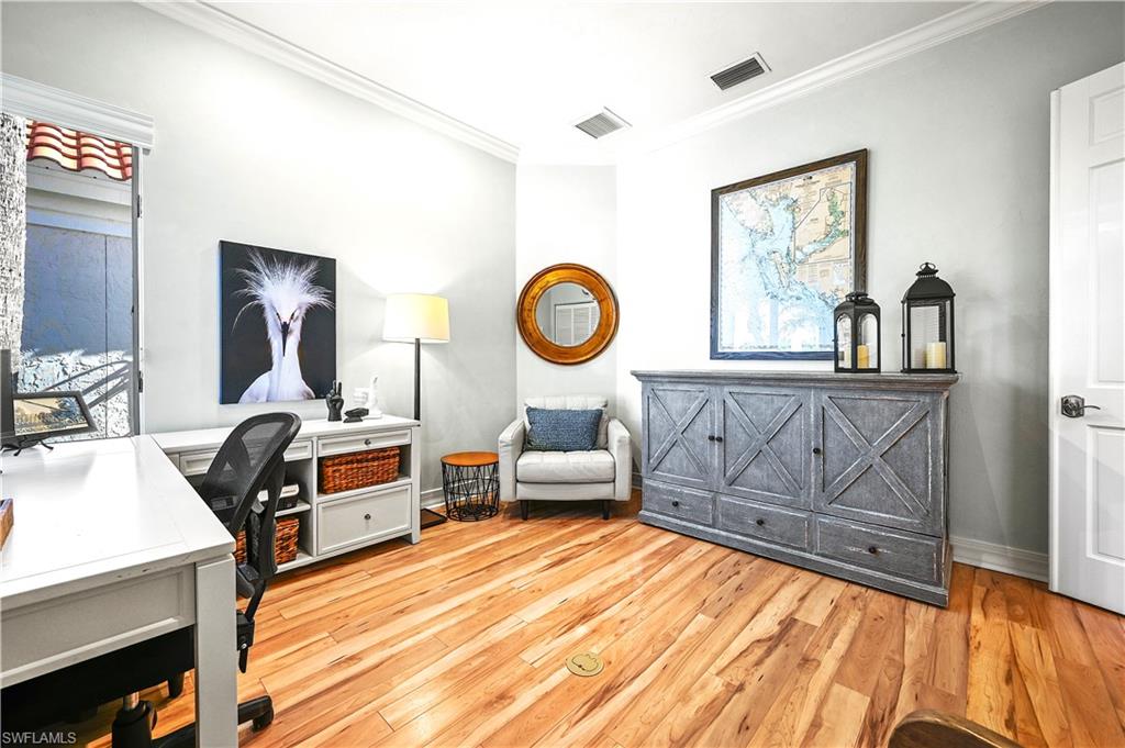 THE ONE YOU HAVE BEEN WAITING FOR! STUNNING POOL HOME WITH OVERSIZE LANAI IN BONITA BAY SOLD TURNKEY COMPLETE WITH GOLF COURSE VIEWS overlooking the 4th hole of the Creekside course. Rest easy knowing the big-ticket items are DONE! NEWER ROOF 2021 WITH TRANSFERABLE WARRANTY, AC late 2024, updated kitchen and appliances, floors and bathrooms, AND, best of all, NO FLOOD ZONE HERE. You will love the SUN-SOAKED rooms, the abundance of windows, and NO STAIRS. With 3 beds & 3 baths across 2,021 square feet under air and nearly 2,500 with the lanai, it’s the PERFECT SIZE for your full-time residence or seasonal getaway. The kitchen is STUNNING complete with KitchenAid & GE appliances, high-end cabinets, and granite countertops—perfect for entertaining. Plenty of storage, breakfast stools, and wine cooler, too! The primary bedroom is spacious with pool views and timeless built ins. The 2nd bedroom has its own on-suite bathroom and private access to the lanai. The 3rd bedroom is furnished with a Murphy Bed and working desk perfect for home office or overnight guests. Riviera is a beautiful enclave in Bonita Bay with only 35 villa homes, situated near the north gate, offering both PRIVACY and CONVENIENCE, making in and out of Bonita Bay easy and quick. Upon arrival, driveway pavers lead to the attached two car garage. As you enter, you’ll be greeted by a GRAND circular entryway, complete with 18’ ceilings throughout and TONS OF NATURAL LIGHT. Lush views from every room, you’ll struggle with staying in or out as the pool area is gorgeous and the pavers are in EXCELLENT condition. New pool pump in 2025. The pool area is perfect for entertaining complete with lush landscaping on all sides, multiple seating areas for lounging and dining. Your family and guests will surely be impressed during gatherings on those sunny Florida days. If you’re looking for a PRIVATE, ONE STORY, TURNKEY HOME in BONITA BAY that offers AMAZING VIEWS, and NO FLOOD CONCERNS, 3471 Riviera is for you! Just bring your personal touches to call this home. Residents of Bonita Bay enjoy 12 miles of walking/ biking trails, bocce, outdoor gym, pickleball, tennis, canoe/kayaking, boat launch, and three on site parks, as well as a new private beach park with in-season shuttle all included in the HOA. OPTIONAL membership to Bonita Bay Club, one of Southwest Florida's premier golf communities, offering an active country club lifestyle, five of championship golf courses and state-of-the-art amenities