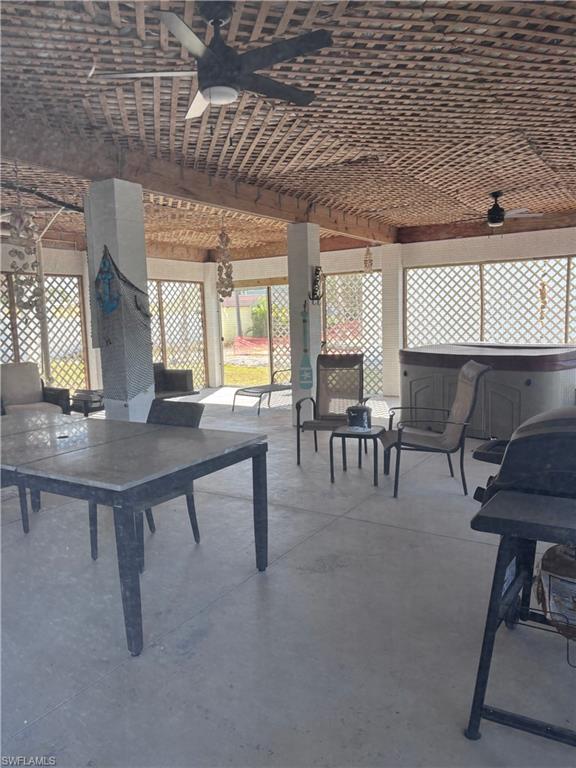 Classic and modern Fort Myers Beach home/cottage. This updated home offers 3 bedrooms 2.5 baths with 2, 000 sqft of living area and another 2, 500 sqft on Ist level which is screened and is a great area to relax and entertain. New construction in 2011 added 1200 sqft while renovating and bringing the original structure up to new code and elevation, Vaulted ceilings, granite countertops and vanity tops, dual HVAC's, custom cabinets, tile floors throughout home. impact windows and doors (home survived lan with zero damage). Large master suite with walk in closet and shower, rear sun deck with stairs, metal/galvanized roof, six person hot tub, security lights, large enclosed storage area and workshop. Home is located in the small community of Gulf Island Manor, and offers a private beach access with a Gazebo and Marina/Park like setting on the back bay with Large Tiki Hut and fishing dock. Private beach and back bay access ! This home has it all.